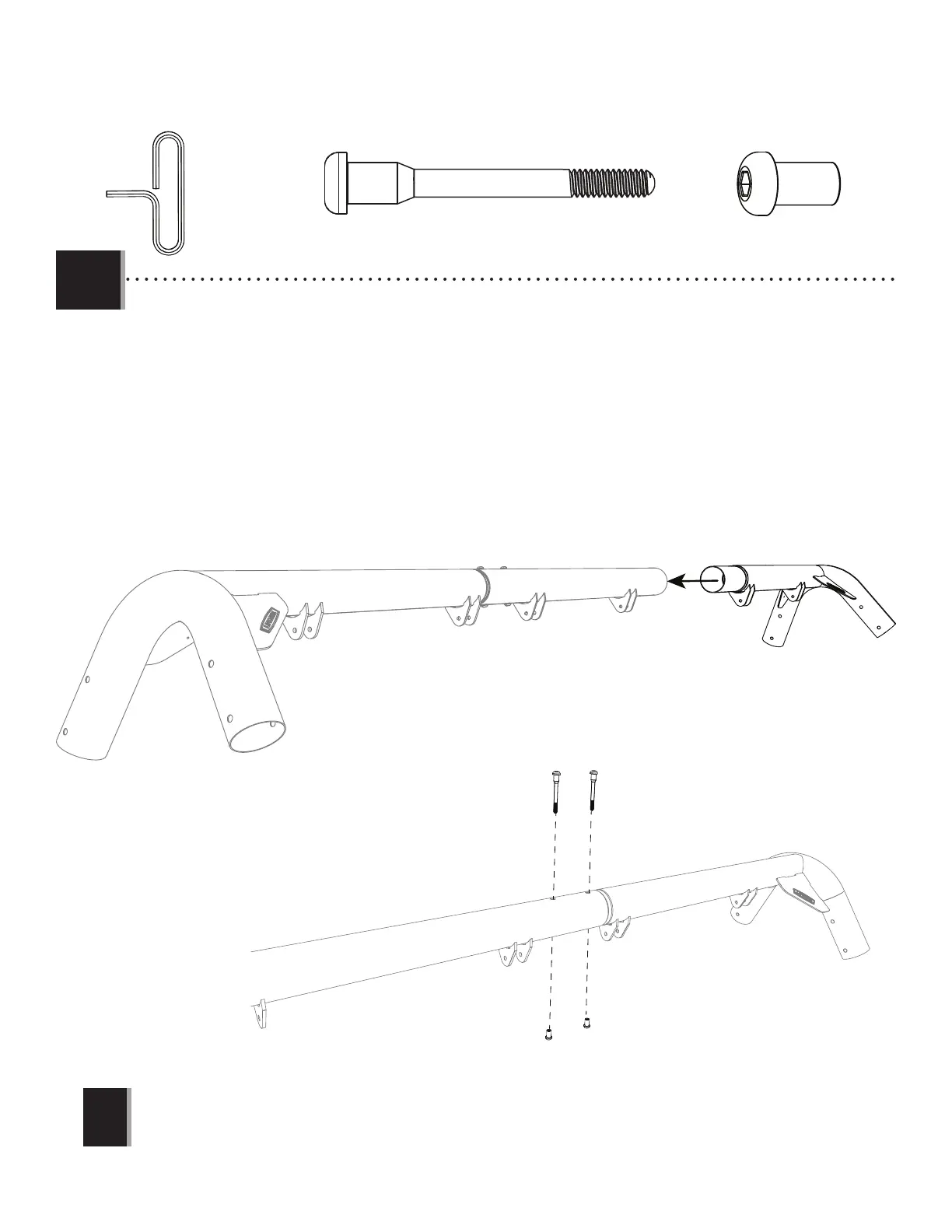 comme illustré, et attachez les Barres de balançoire à l’aide des accessoires illustrés.