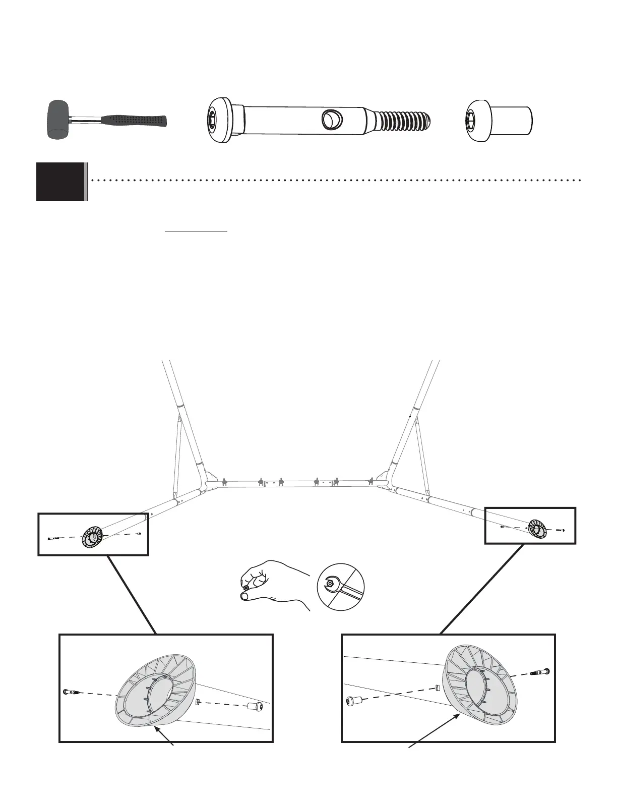 • Placez le capuchon de pied (GBV) avec le grand bord tourné vers le sol dans la partie inférieure du pied de balançoire