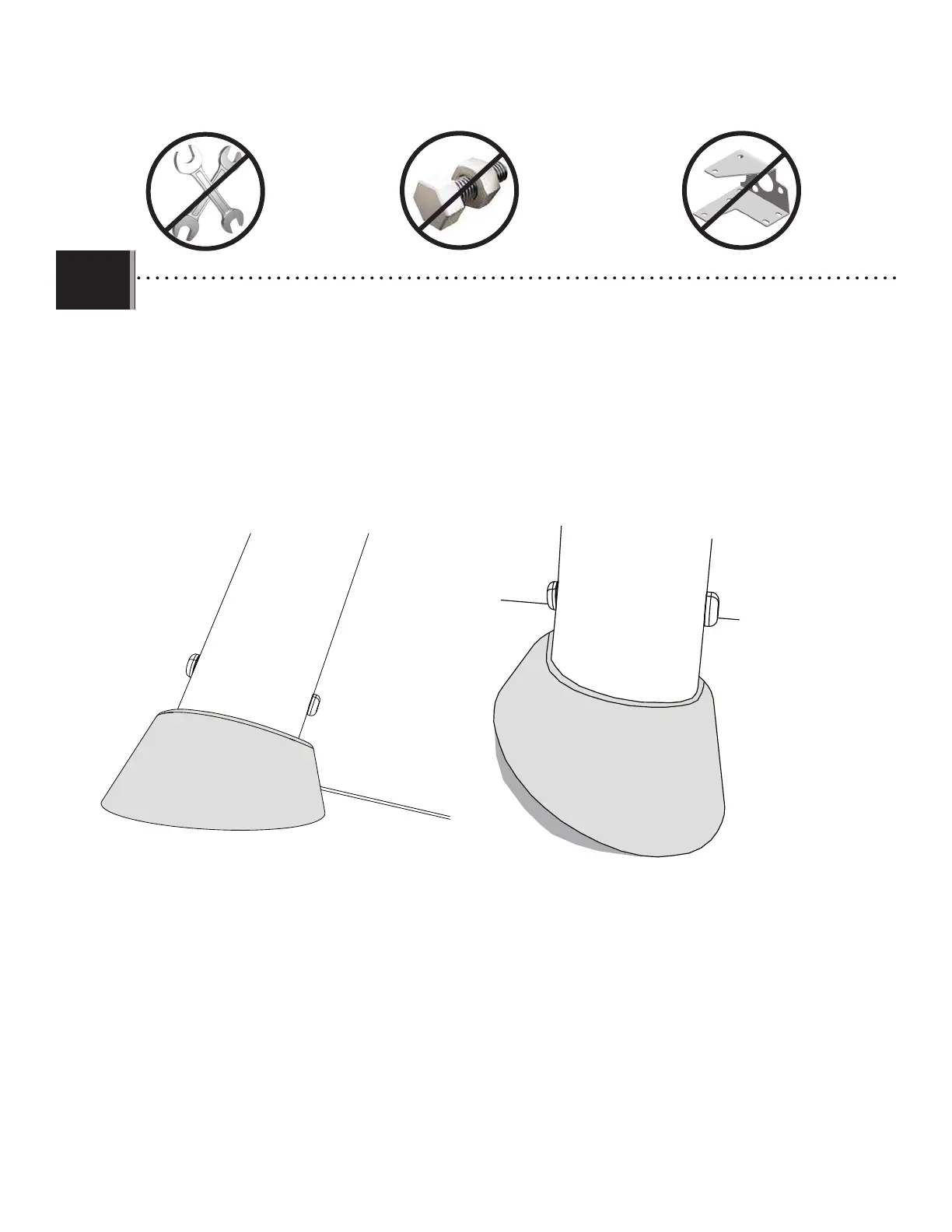 • Una vez que los columpios son verticales, asegúrese que les tapones de patas (GBV) son planos en el piso. Si no,