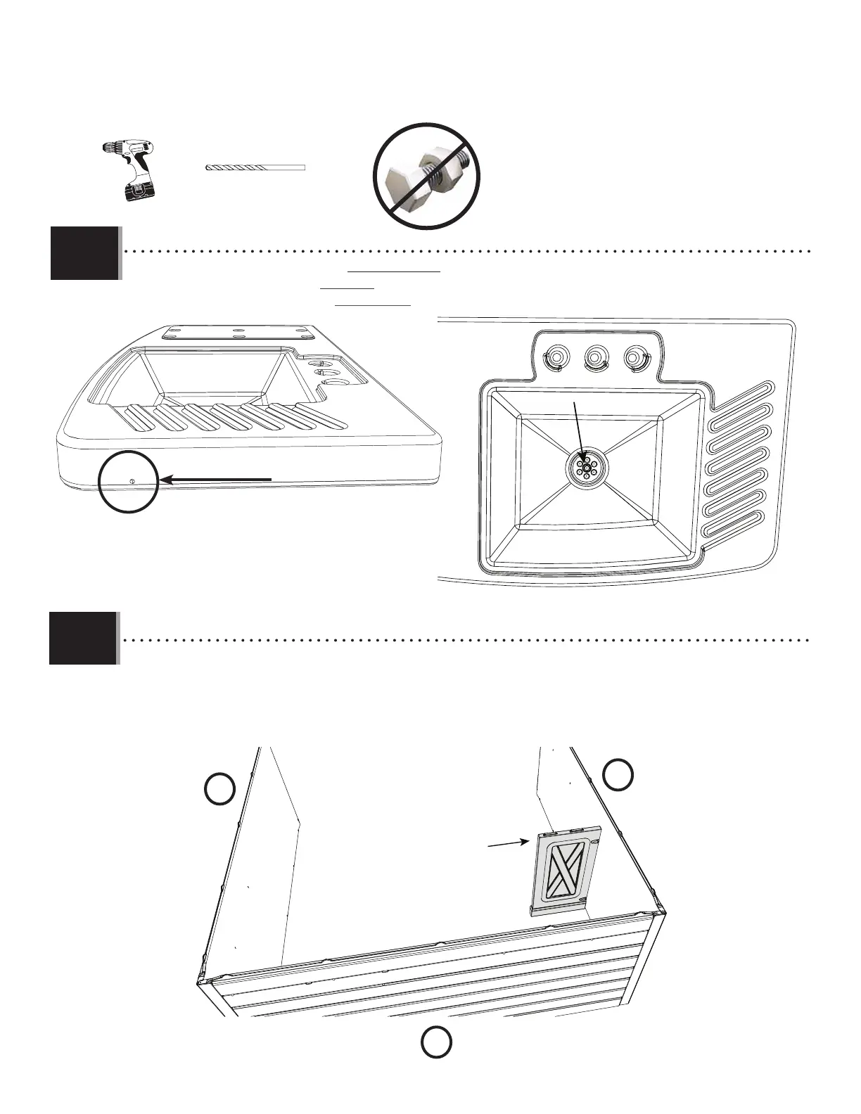 • Drill the following hole through the Right-hand side of the sink (GHP). Drill one hole at the bottom of the sink.
