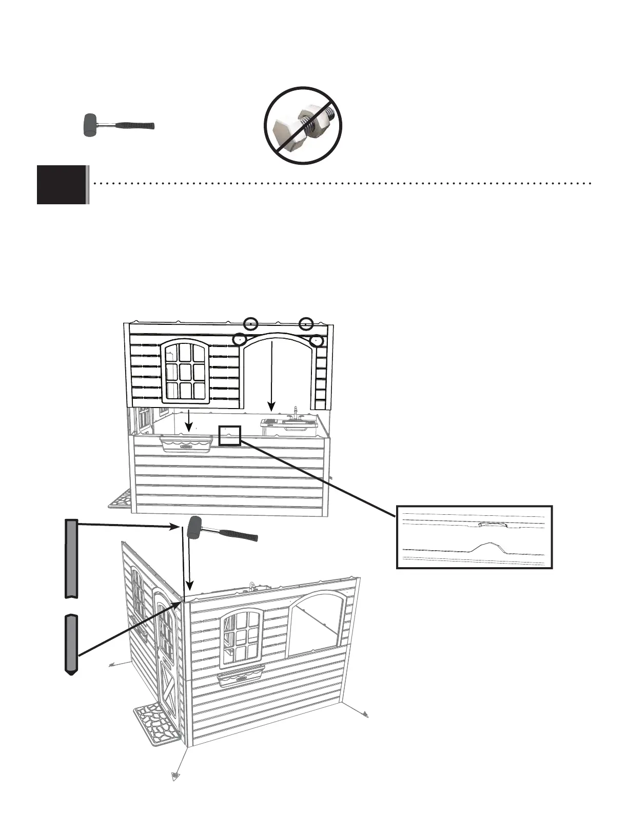 • Place an upper window and door panel wall (GHB) on the right-hand side over the lower wall panel (GHA) and interlock the corners.