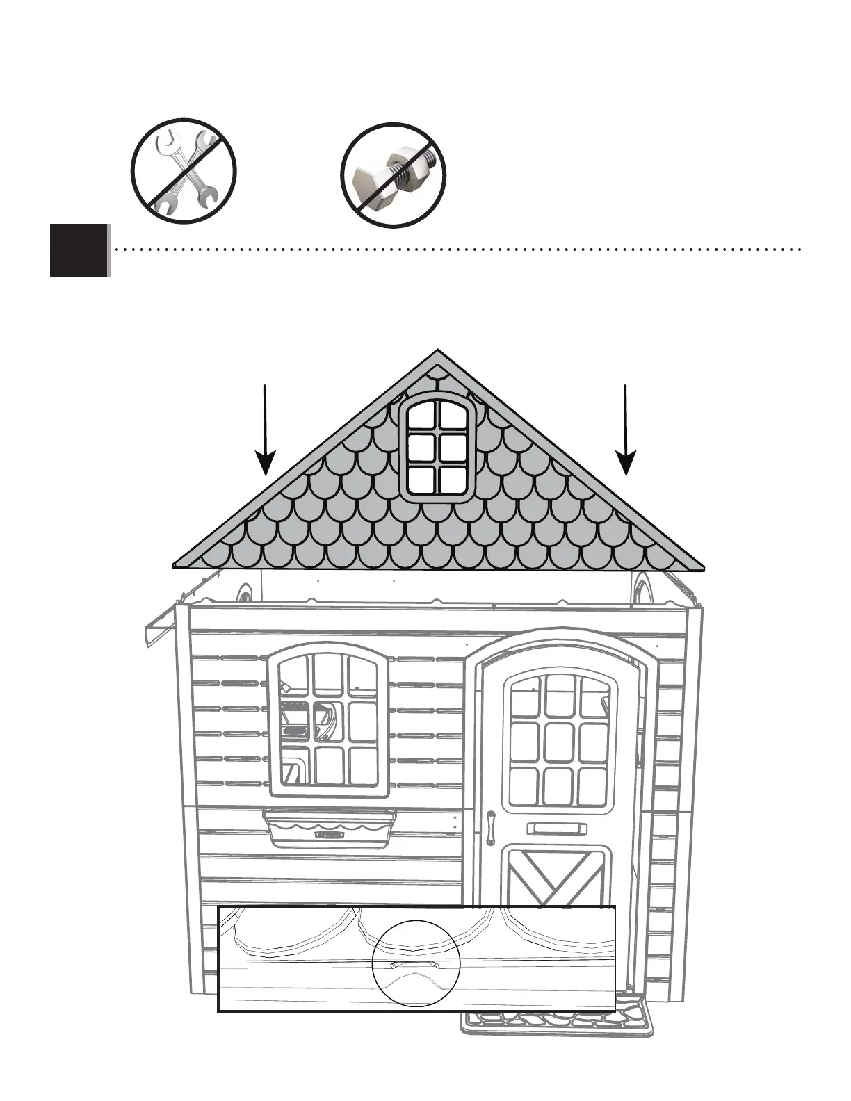 • Place the fi rst gable (GGN) on the front of the playhouse lining up the slots with the tabs from the upper front