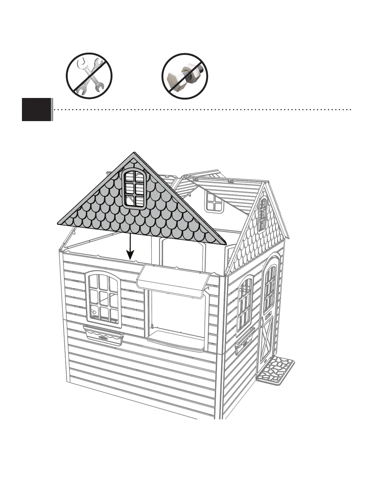 • Place the fourth gable (GGN) on the left-hand side of the playhouse lining up the slots and tabs.