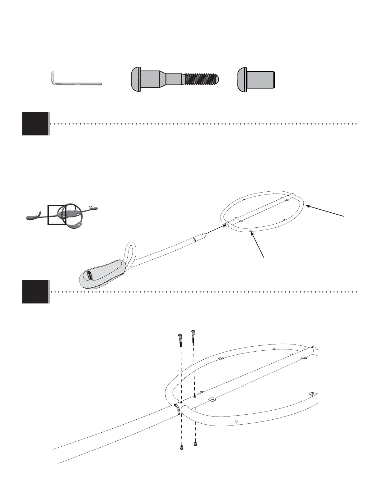 • Attach the fi rst seat assembly to the middle support (GNW) with the hardware indicated.