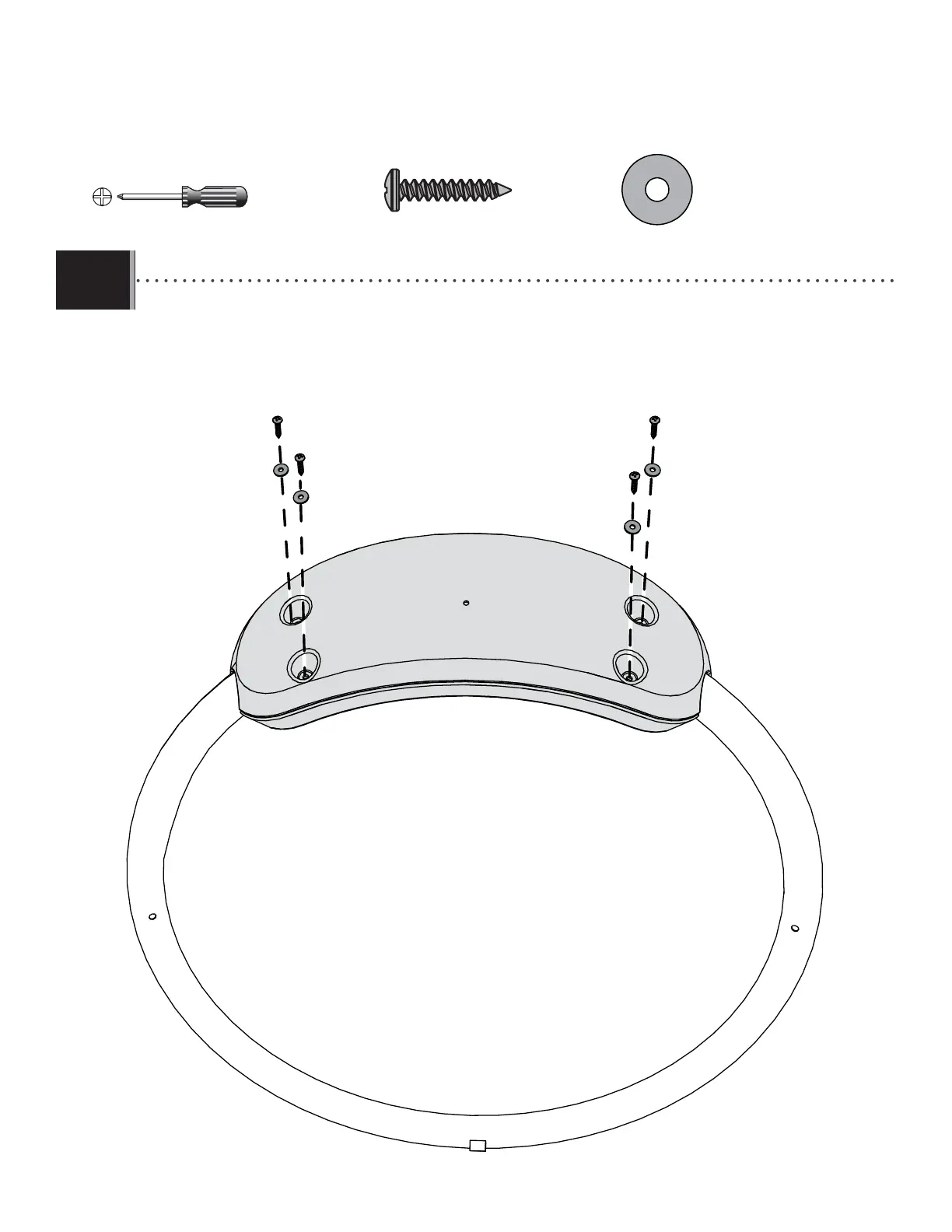 • Attach the top foot rest (GOF) and the bottom foot rest (GOG) onto the ring support (GNX) with the hardware indicated.