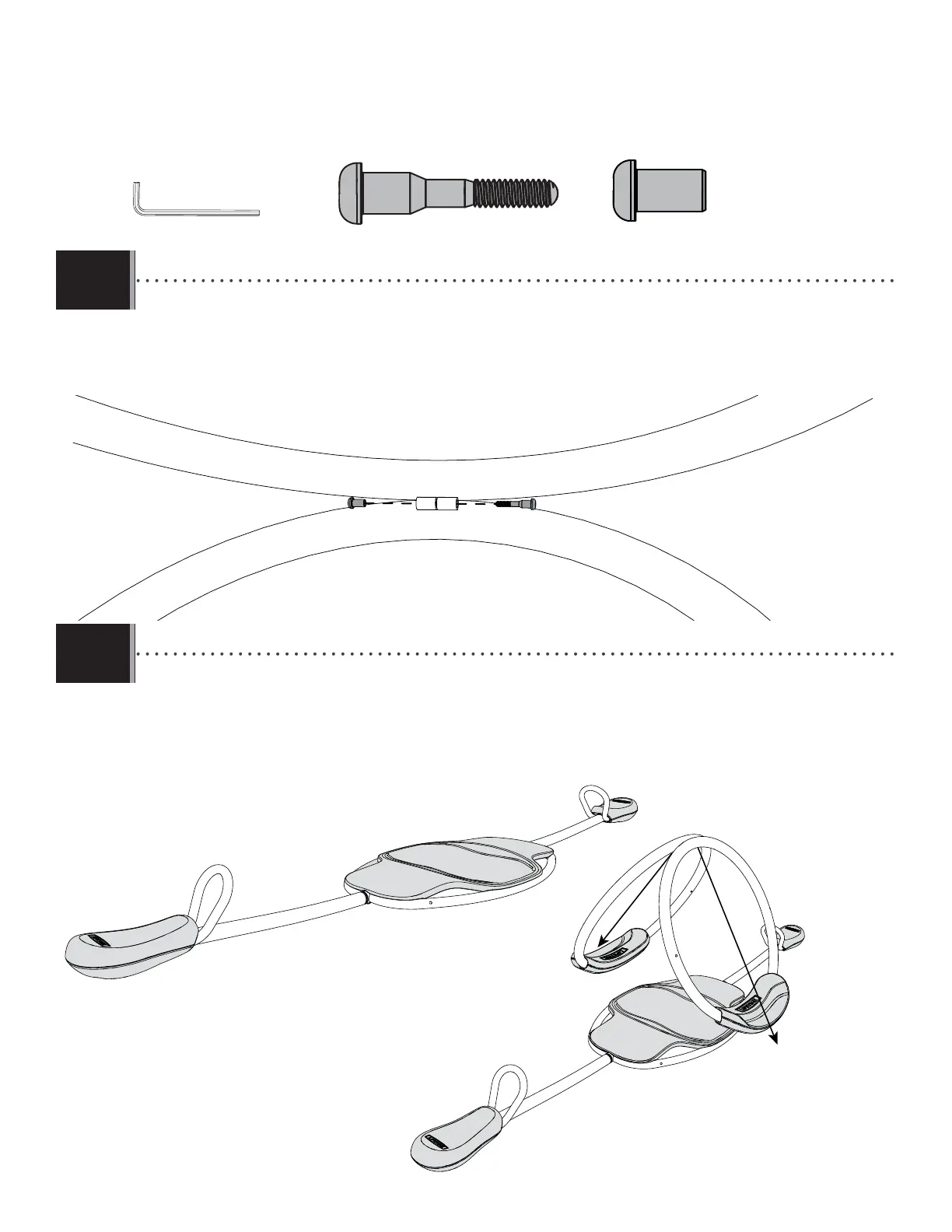 • Using two (2) adults, attach the ring supports at the hinge with the hardware indicated. DO NOT TIGHTEN
