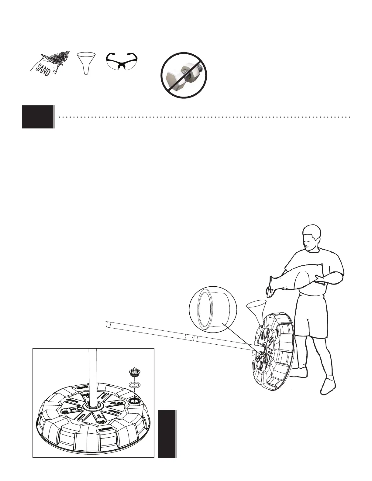 large hole. Once the sand has reached the hole, have two adults stand the base up on a fl at surface. Finish fi lling the base