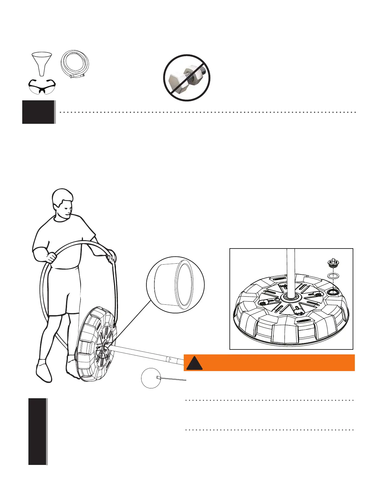 water is just below the hole. Using two adults, stand the base up on a fl at surface and fi nish fi lling the base with water. Add