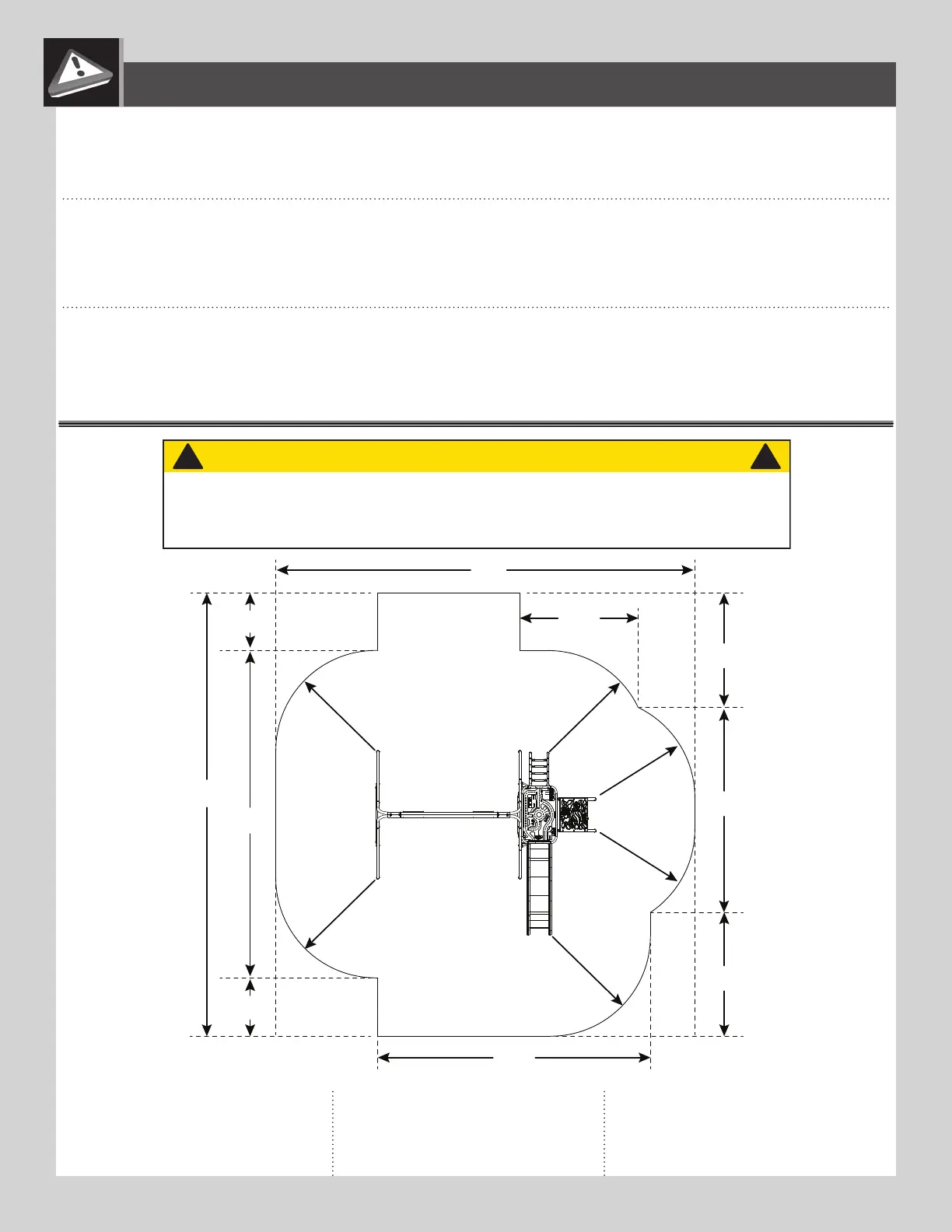 SAFETY ZONE—Place the equipment no less than 6.6 ft. (2,0 m) from any structure or obstruction