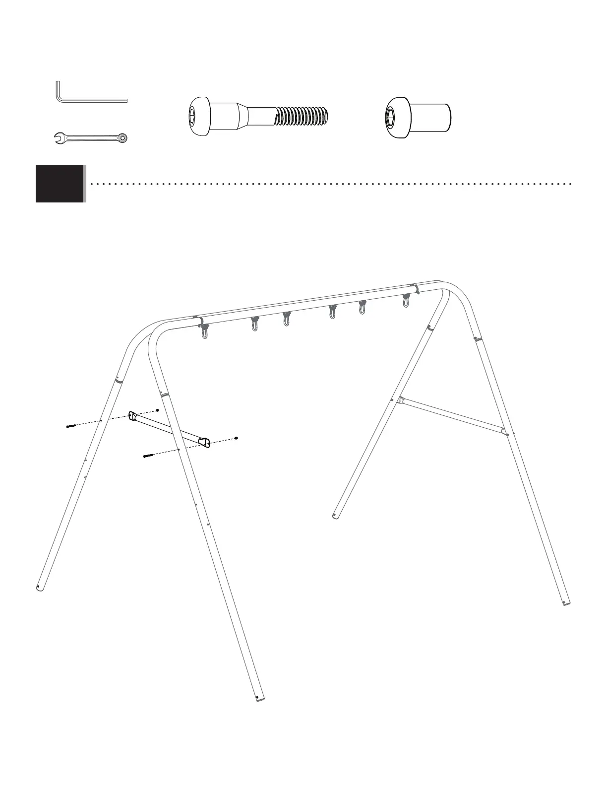 • Secure the cross bar (DWO) to the A-frame assembly. Ensure the turnbar rests fl ush against the A-frame legs (EDP),