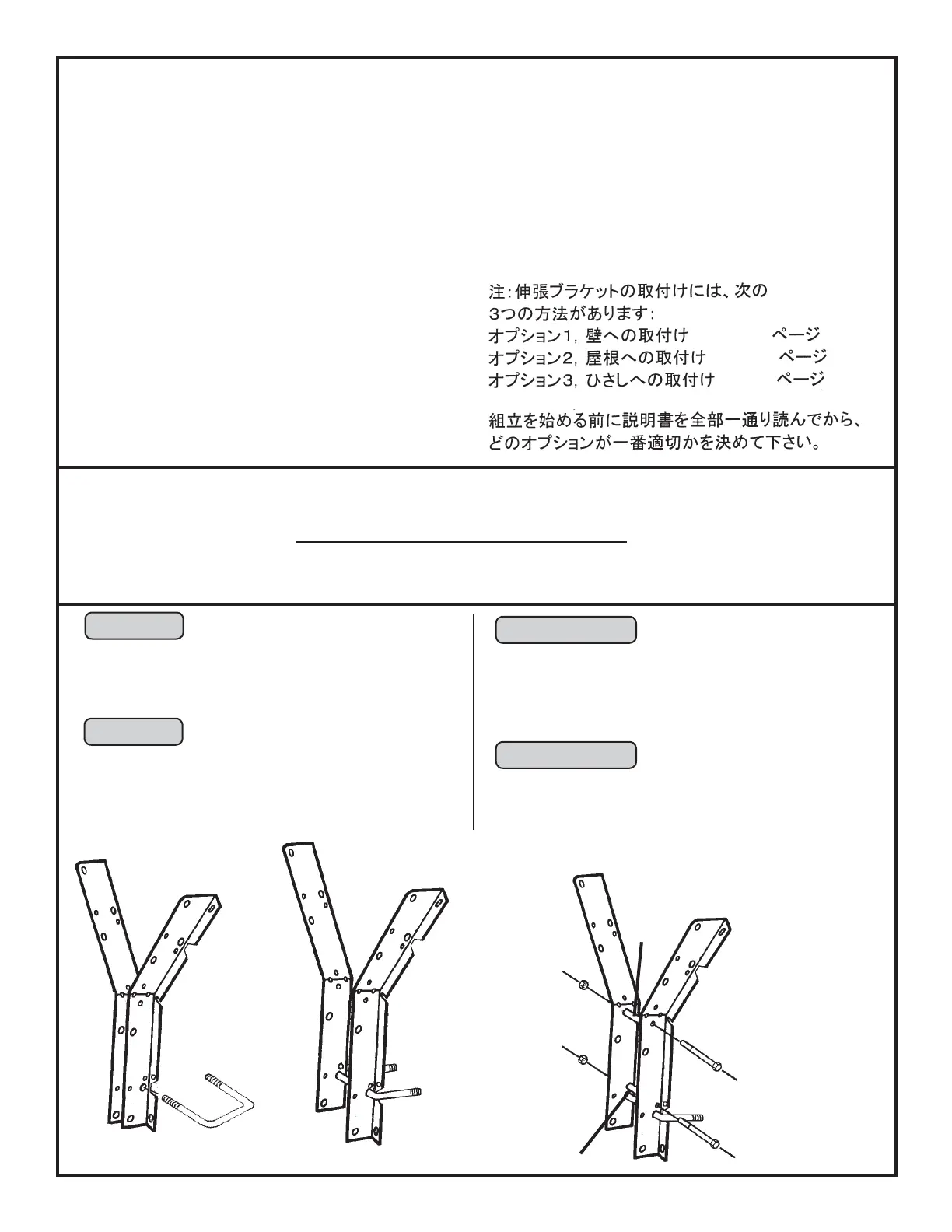 NOTE : Il y a 3 façons de monter le Support d’Extension: OPTION 1 : MONTAGE SUR MUR pages 7-11; OPTION 2 : MONTAGE SUR TOIT