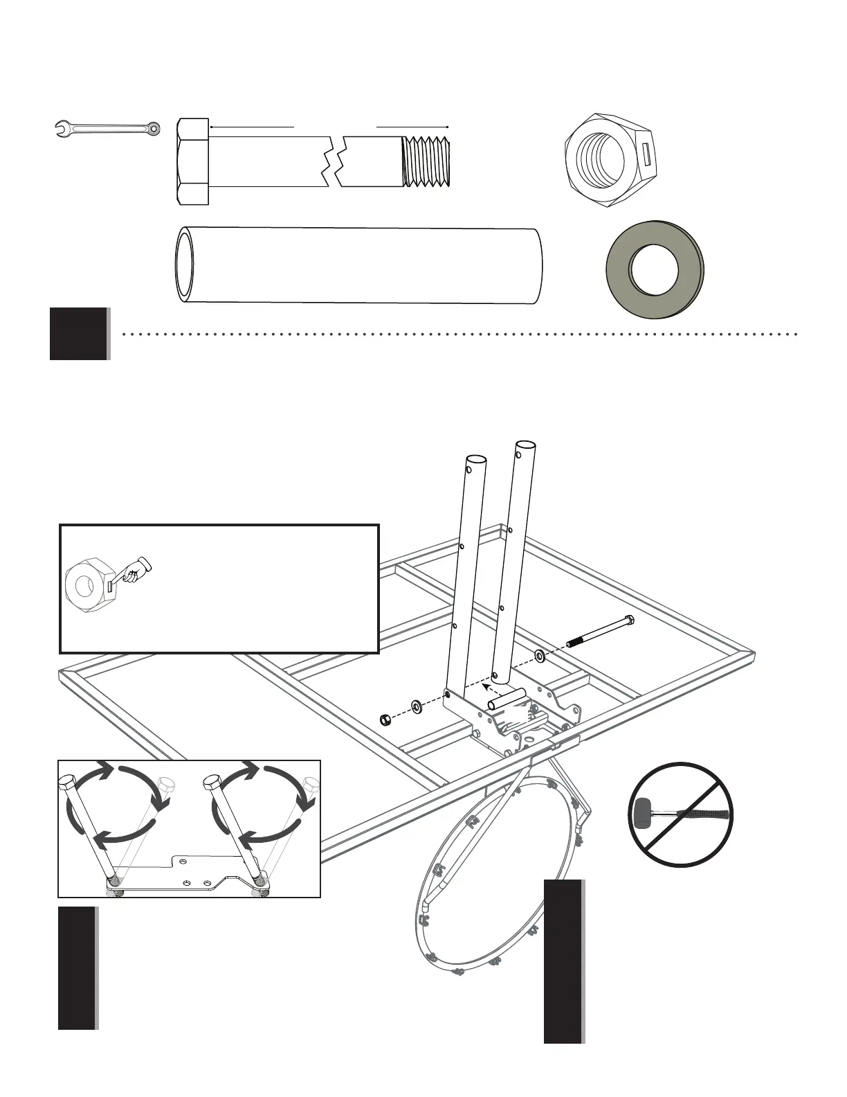 • Attach the Short Extension Arms (AKC) to the Backboard Brackets in the location shown with the hardware indicated.