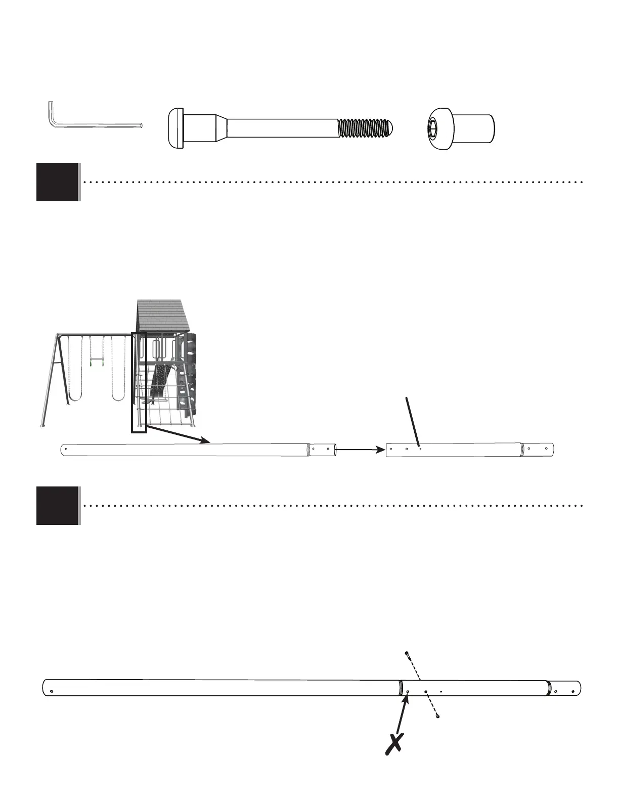 • Attach the bottom A-frame pole and the top A-frame pole together with the hardware indicated. Only attach the poles