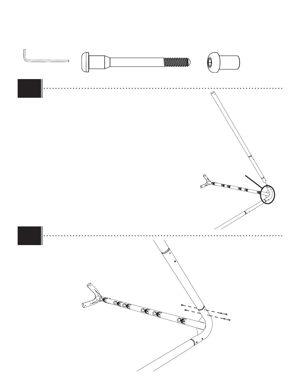 • Place the second outside A-frame poles to the swing bar with the hardware