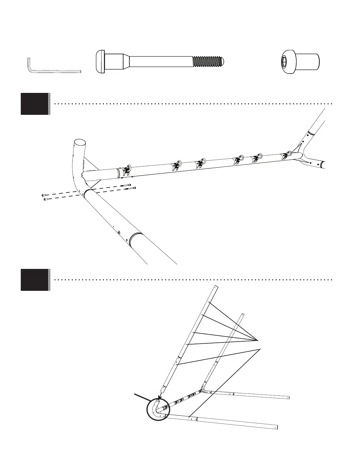 • Attach the inside A-frame pole into the swing bar with the hardware indicated.
