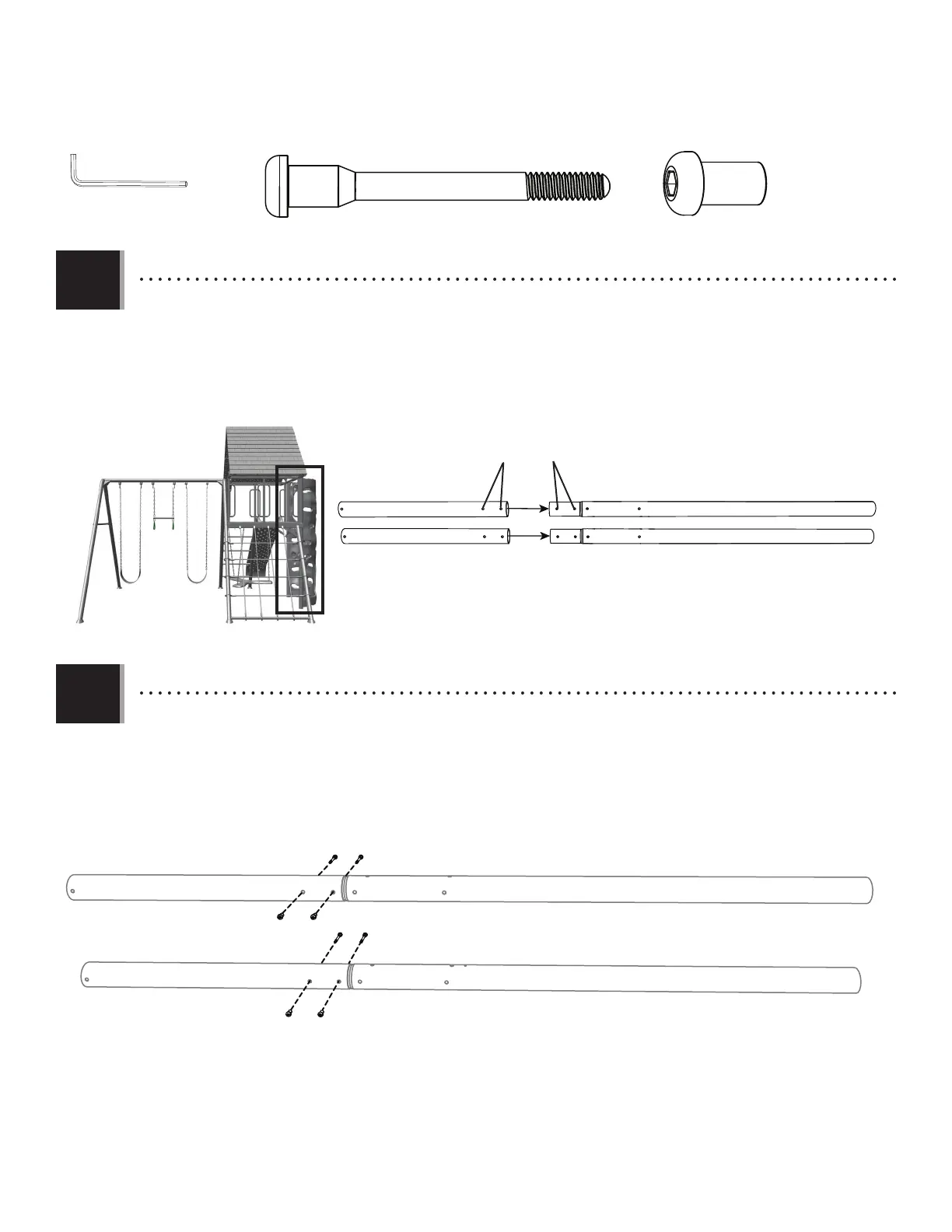 • Attach the two (2) climbing wall top tubes (GPH) the two (2) climbing wall bottom tubes (GPG) with the hardware