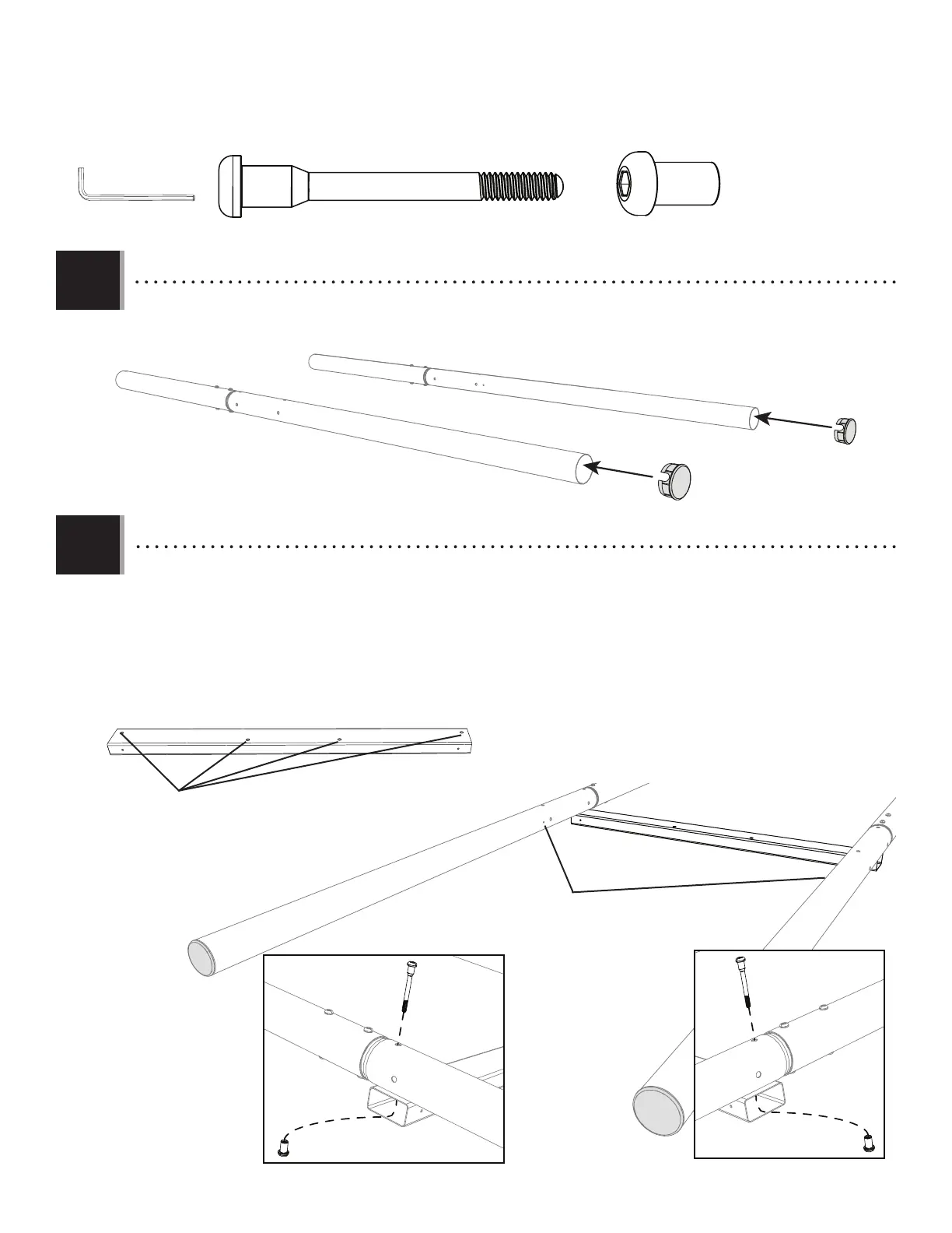 • Insert the end caps (BZL) into the bottom of the climbing wall pole assemblies.
