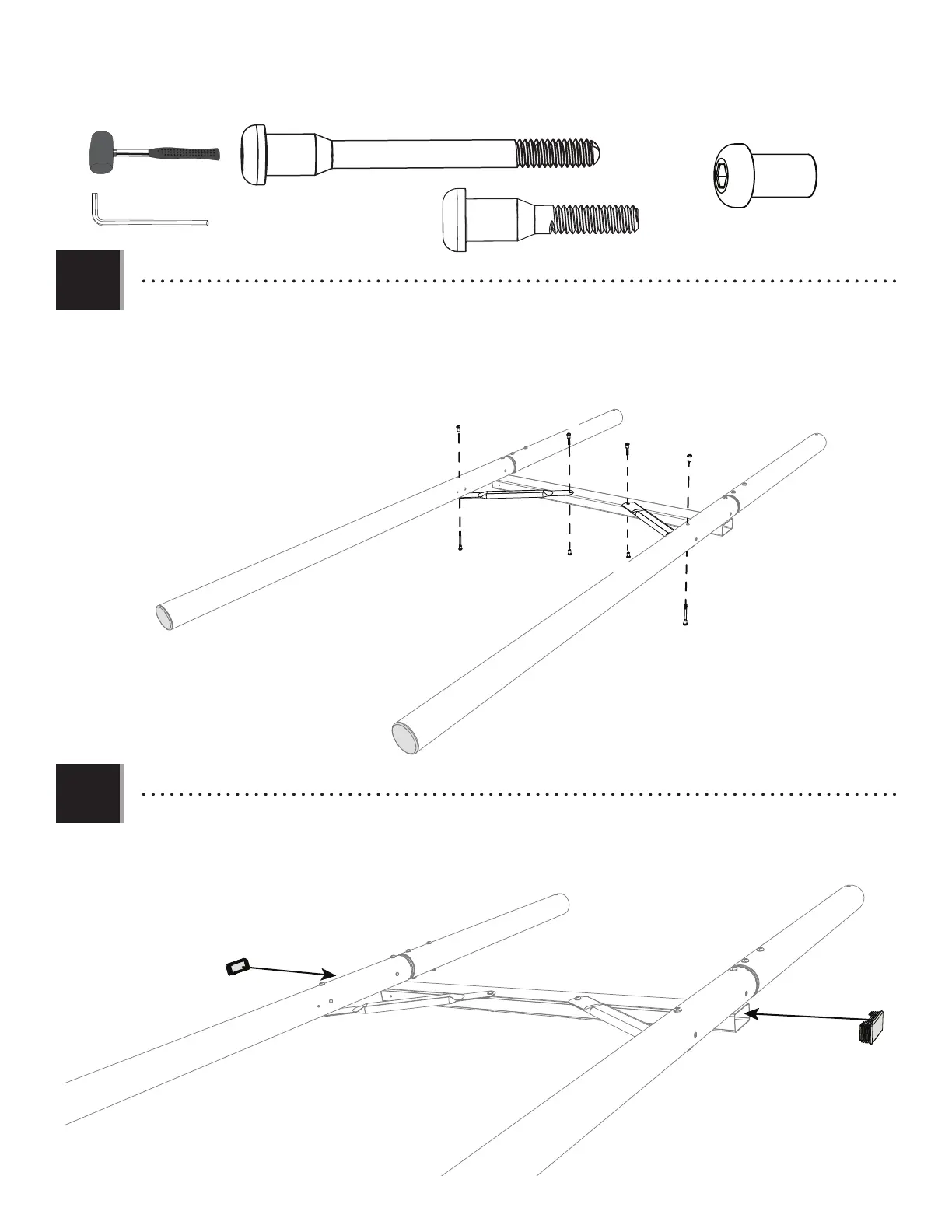 • Place two (2) end cap plugs (FJW) into the ends of the deck support tube (CBA). Use a rubber mallet if necessary.