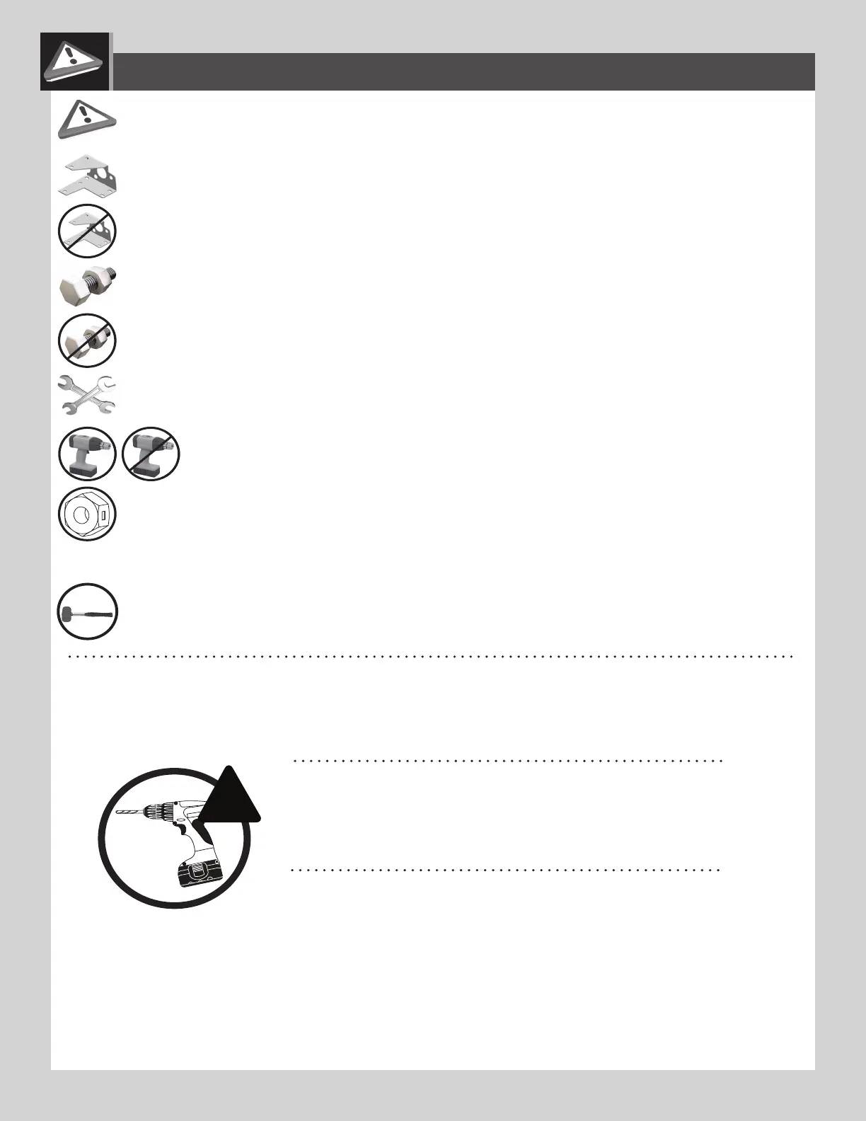 • Indicates to use/not to use an electric drill for a specifi c step.