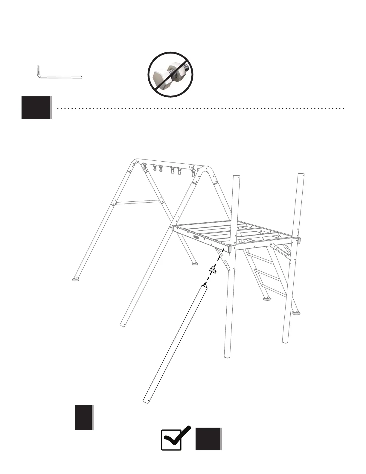 • NE fi xez PAS la patte de fi let à grimper en angle avec la quincaillerie jusqu’à indiqué dans l’assemblage.