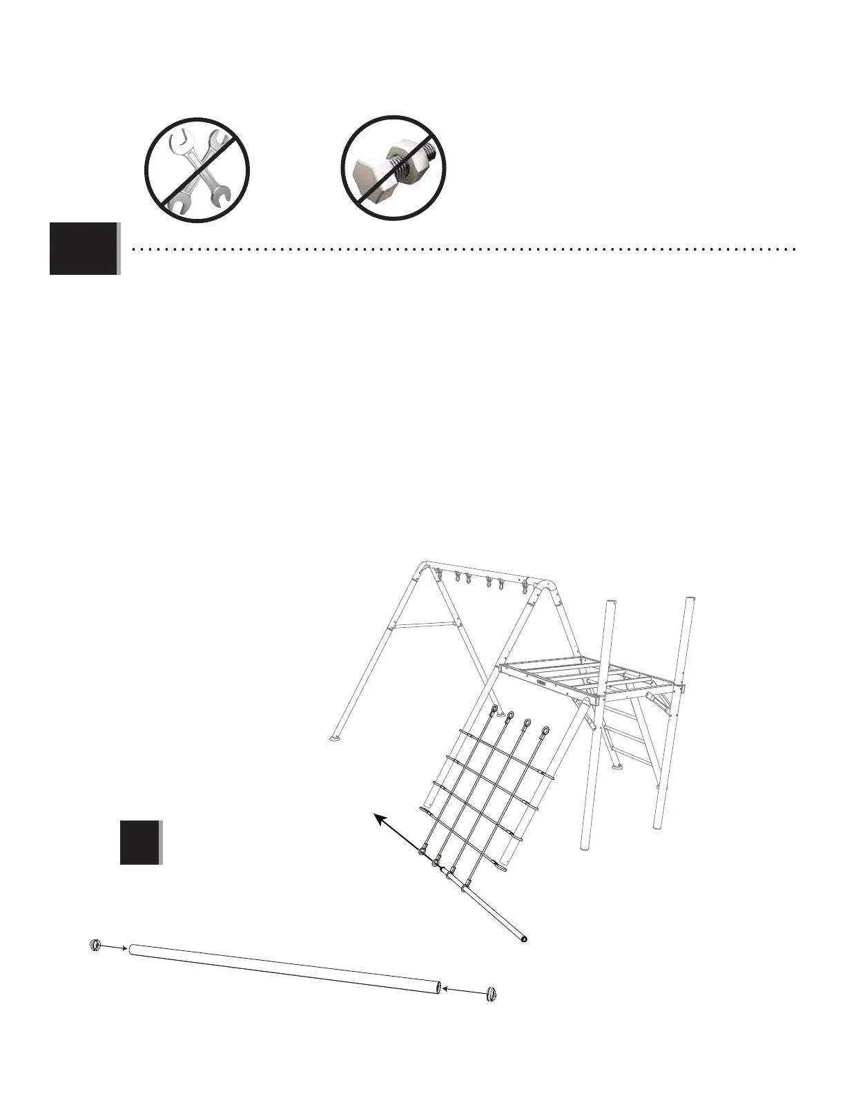 perche de fi let à grimper (ARY) à chaque bout de la perche inférieure du fi let à grimper (CBN). Glissez la perche pnférieure du fi let