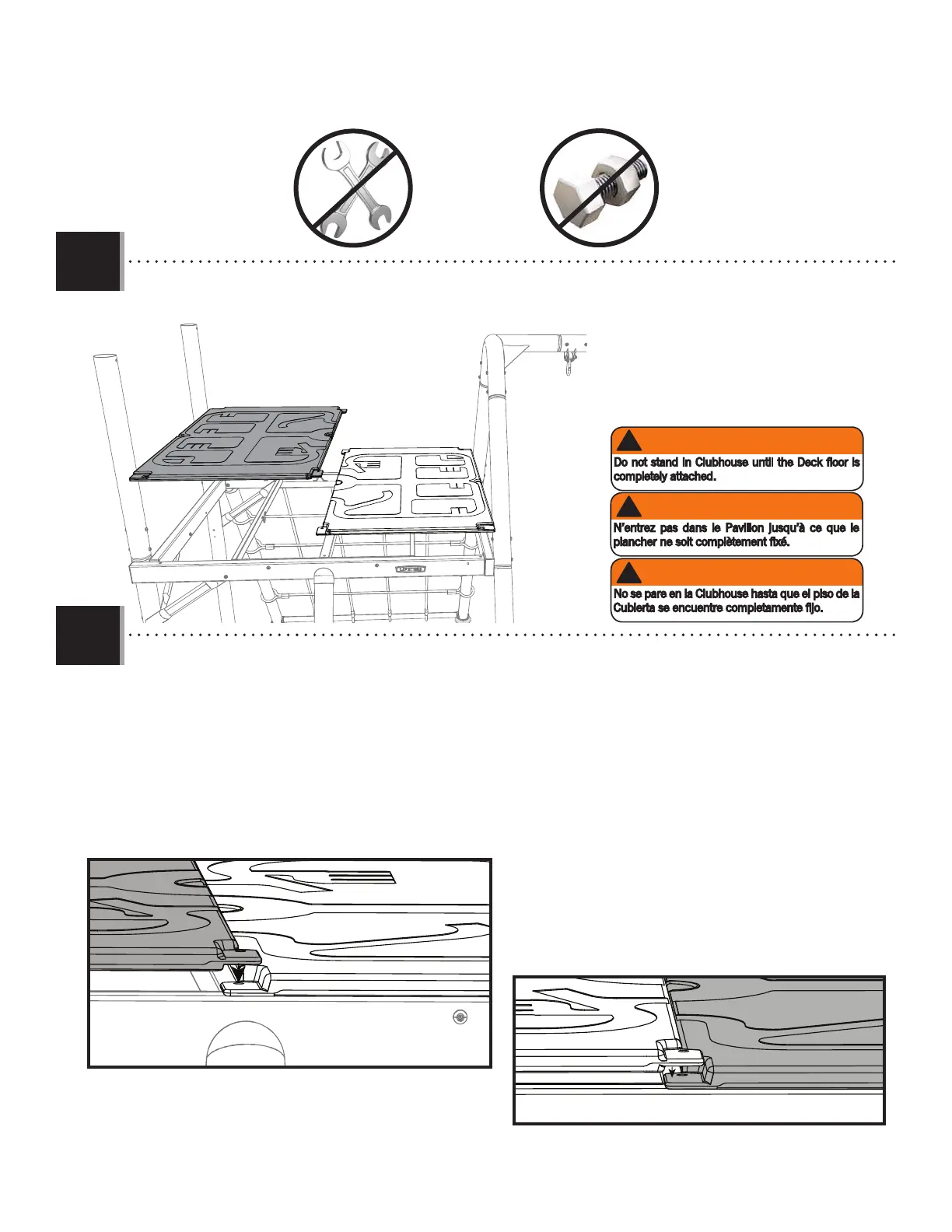 en métal et les bords du platelage s’alignent. Ajustez au besoin.