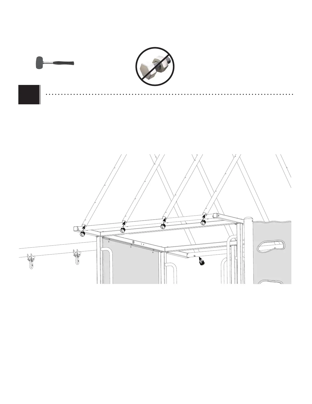 • Insert the dome caps (EIH) into the ends of the roof trusses (CCB). Tap lightly with a rubber mallet if necessary. Align