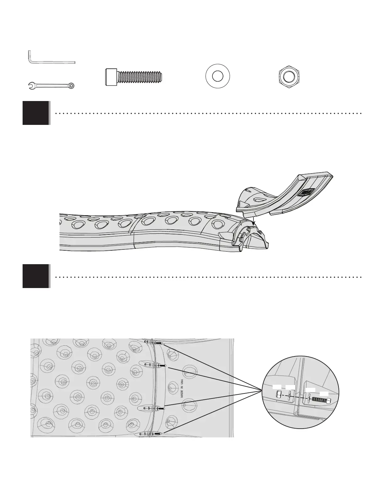 • Secure the slide parts with the hardware indicated.
