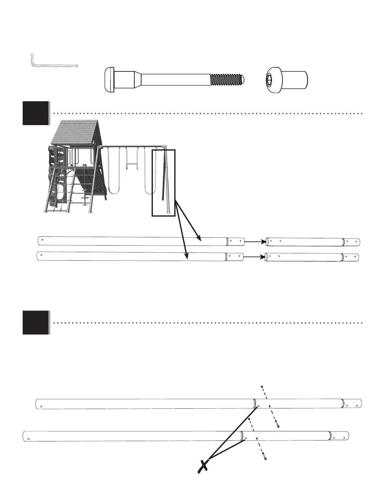 • Attach the top outside A-frame pole (GPN) and the bottom A-frame pole (GPJ) with the hardware indicated. Only attach the