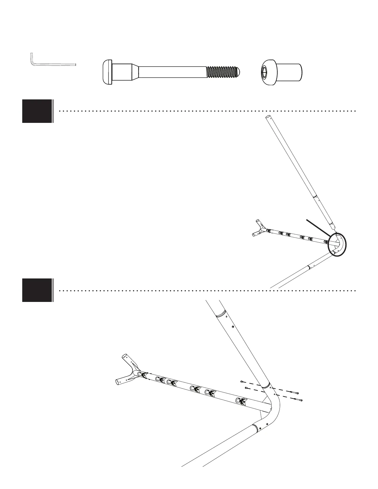 • Place the second outside A-frame poles to the swing bar with the hardware