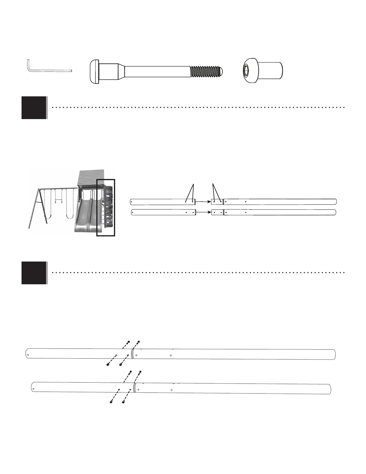 • Attach the two (2) top climbing wall tubes (GPH) the two (2) bottom climbing wall tubes (GPG) with the hardware