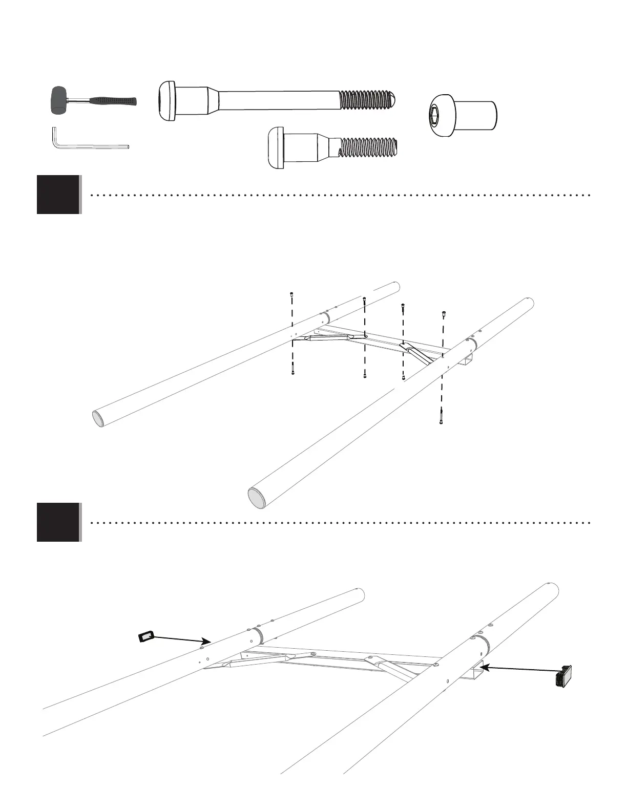 • Place two (2) end cap plugs (FJW) into the ends of the deck support tube (CBA). Use a rubber mallet if necessary.