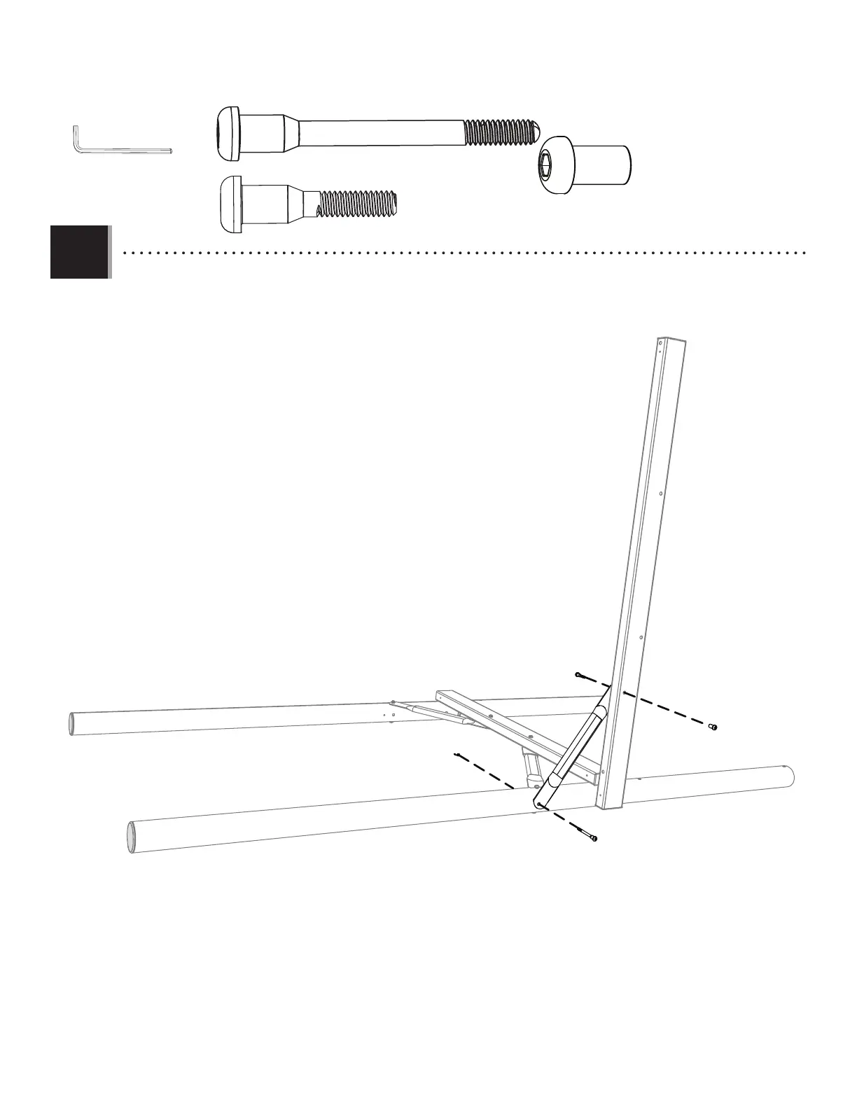 • Attach a cross-brace (CBP) to the ladder-side rail (CBB) in the position indicated with the hardware shown.