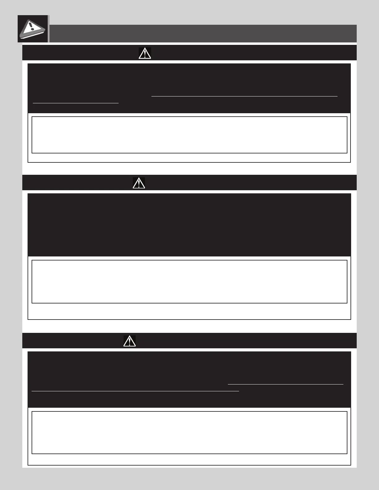 LE NON-RESPECT DE CES AVERTISSEMENTS PEUT RÉSULTER EN ACCIDENTS GRAVES OU DOMMAGES MATÉRIELS ET ANNULER LA GARANTIE.