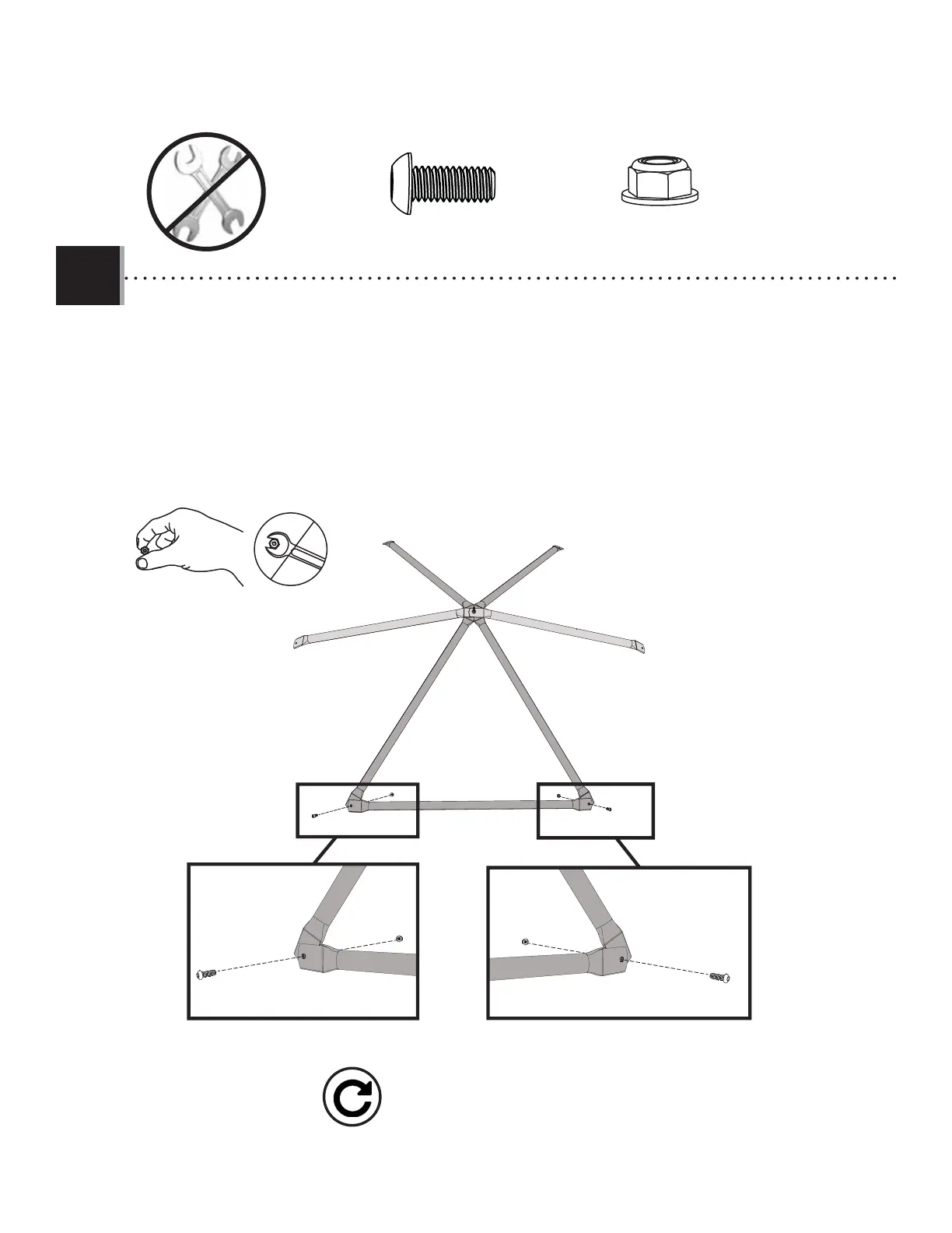quincaillerie indiquée. Serrez à la main l'écrou nylock pour le retirer plus tard. Suivez le même montage pour