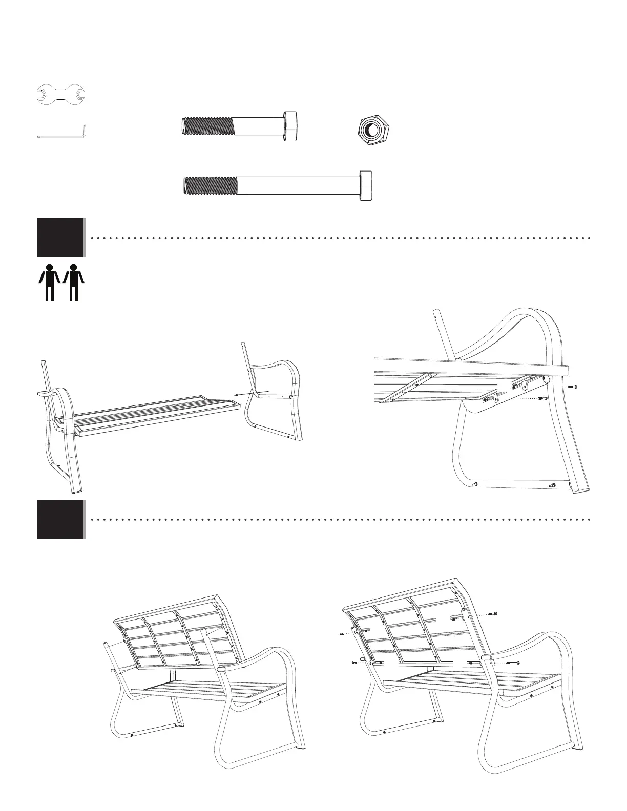• Align the holes in the Back (BSZ) with those in the Arms. Secure using the hardware provided.