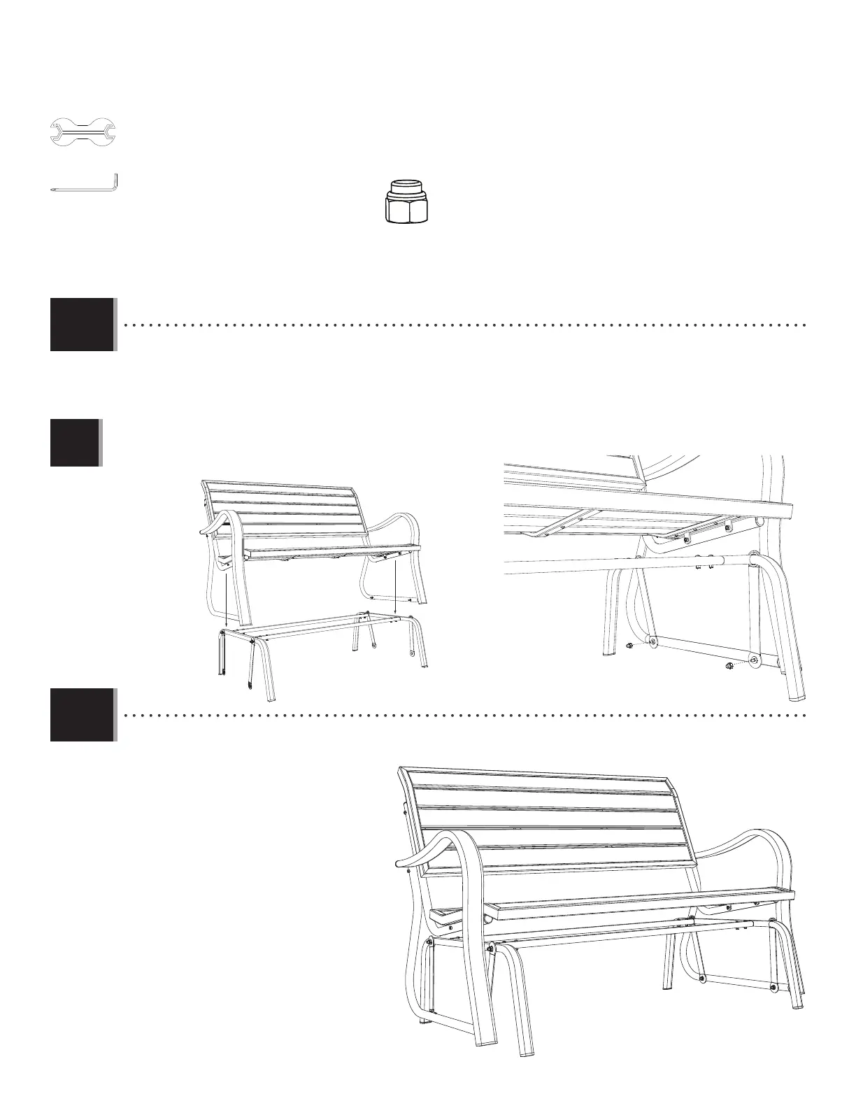 • Set the Seat Assembly down over the Base, and attach the Bearing Arms to the Base as shown. Do not overtighten.