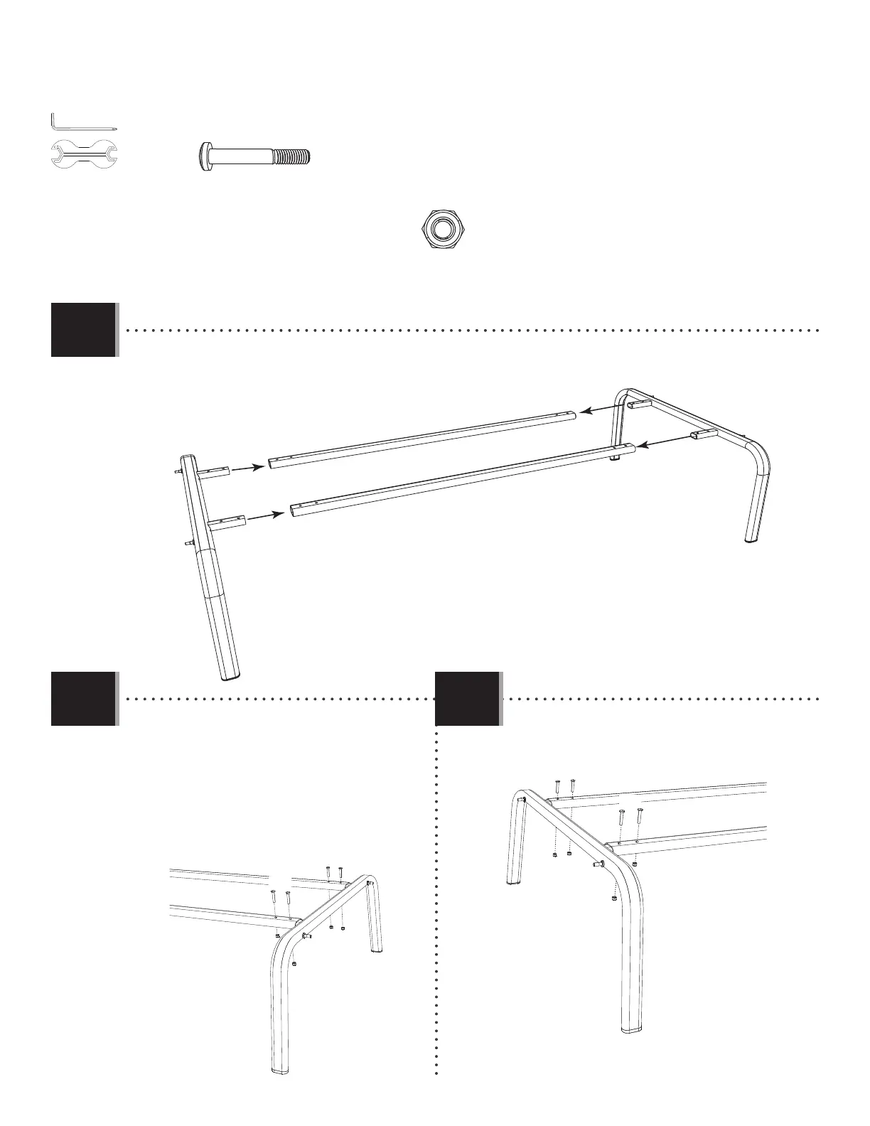 • Slide the Cross Supports (BAU) over the Legs as shown.