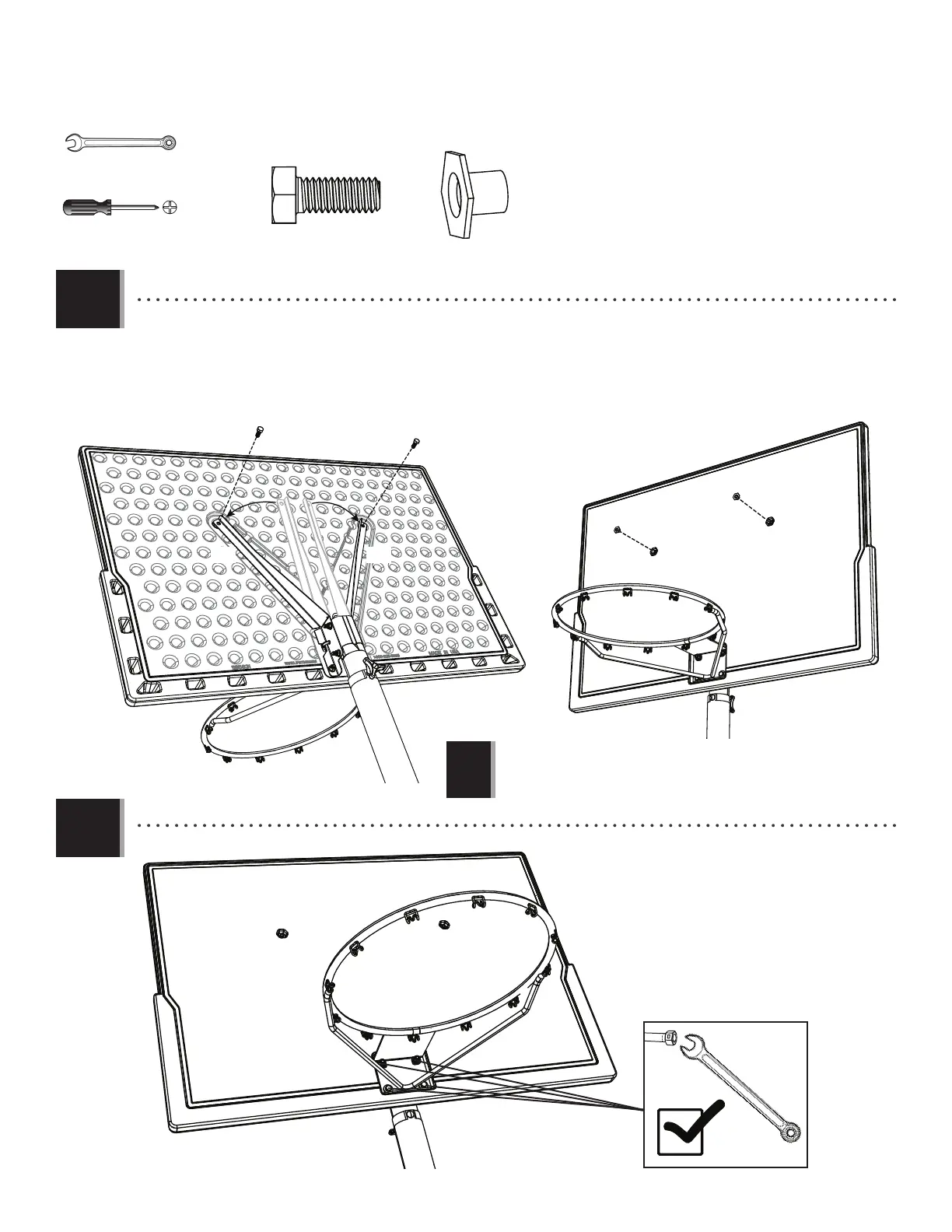 holes in the Backboard. Then securely fasten the Backboard Brackets to the Backboard with the hardware indicated.