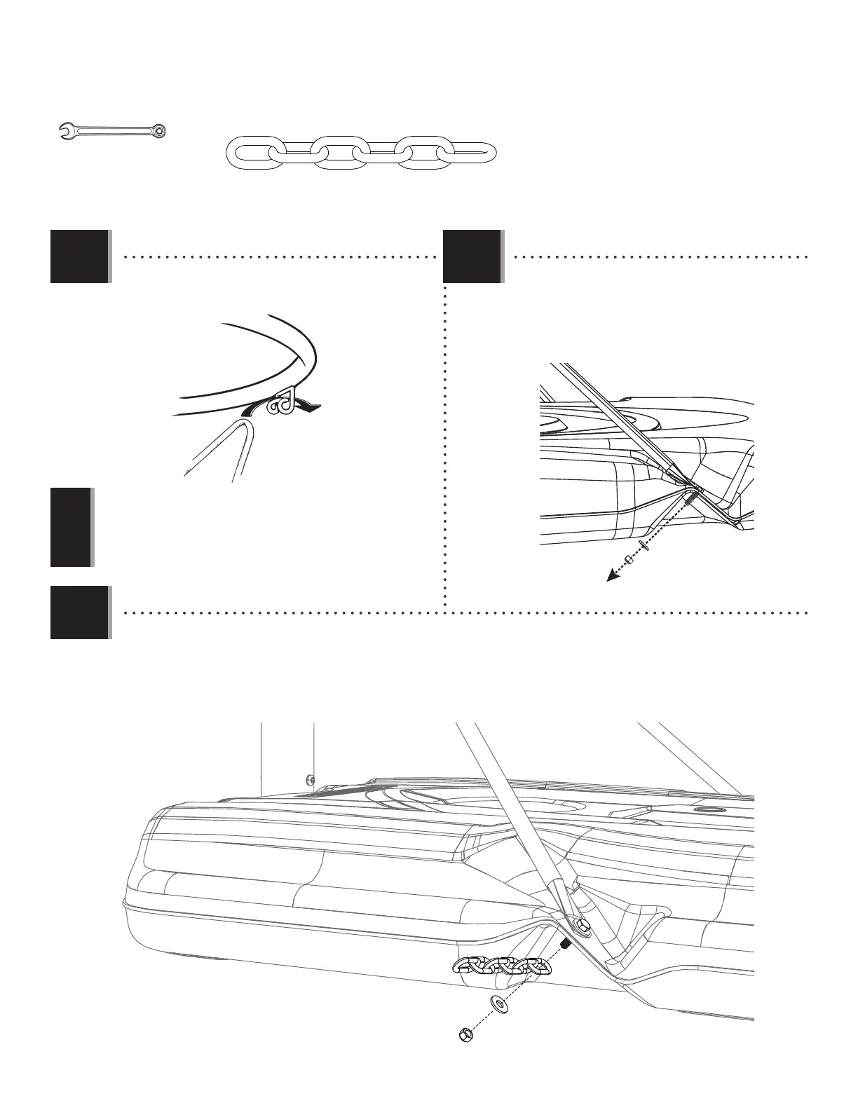 • Faites glisser la chaîne (CNC) sur le boulon hexagonal (BKH) et attacher à nouveau la quincaillerie comme indiqué. Serrez