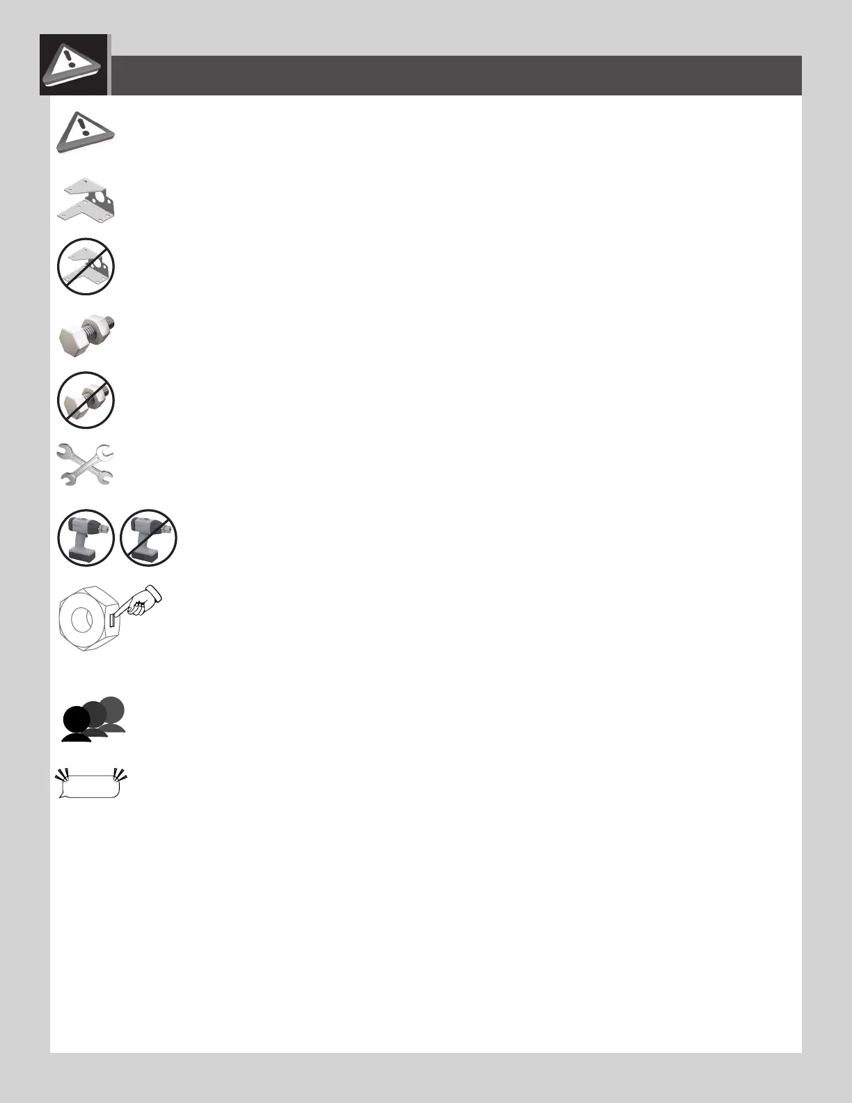 • Indicates to use/not use an electric drill for a specifi c step.
