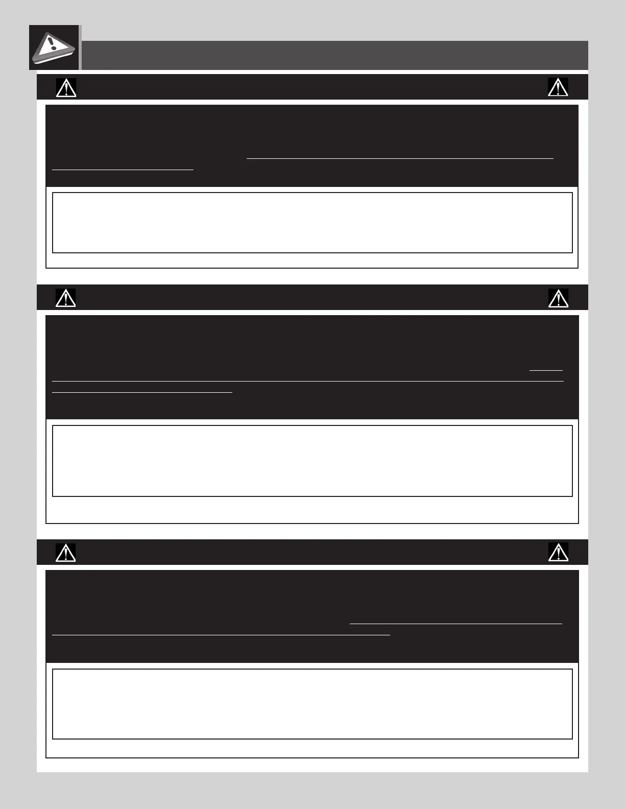 FAILURE TO FOLLOW THESE WARNINGS MAY RESULT IN SERIOUS INJURY OR PROPERTY DAMAGE AND WILL VOID WARRANTY.