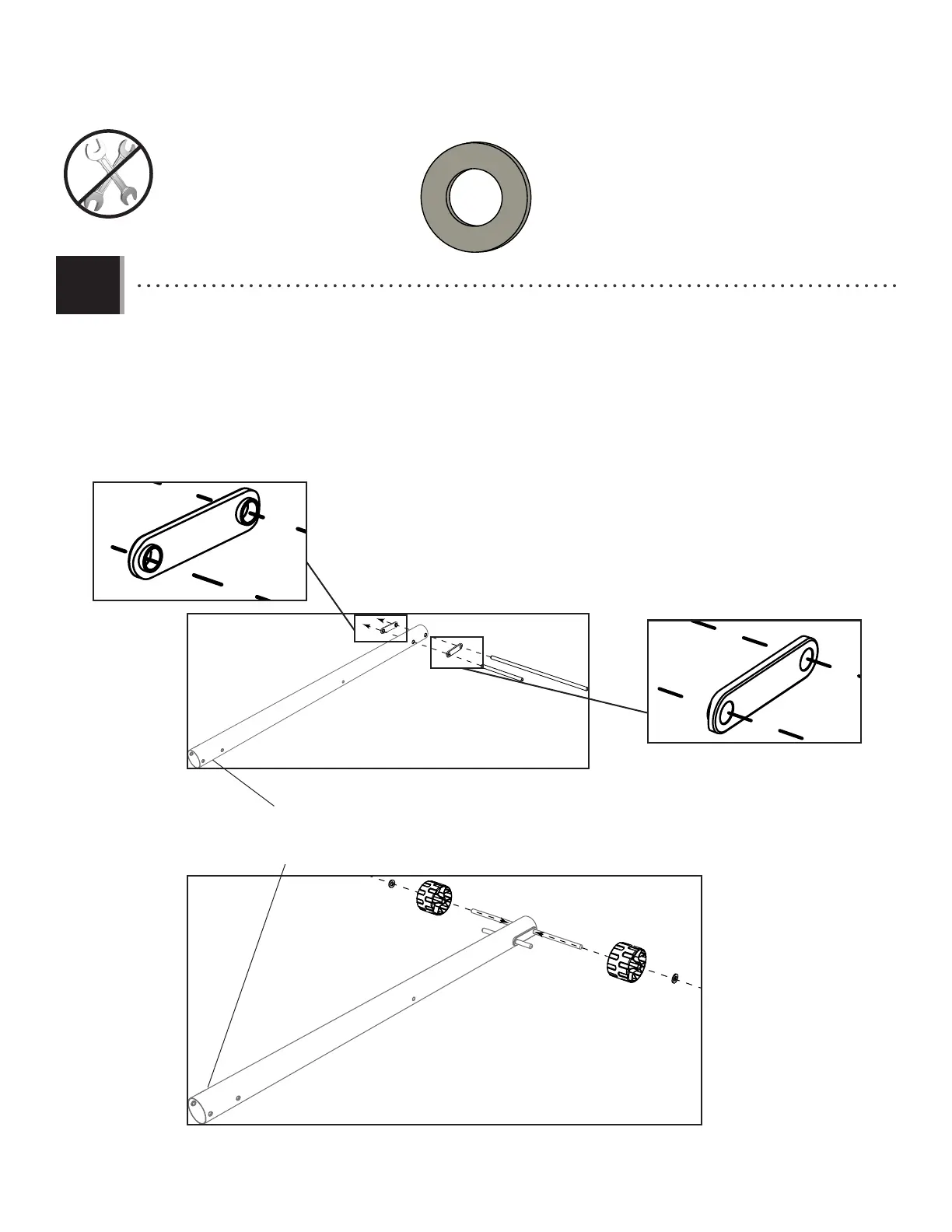 and short (HHK) axles through the holes at the end of the pole (Fig. 1). Note the orientation of the pole spacers (HIA). Slide the wheels
