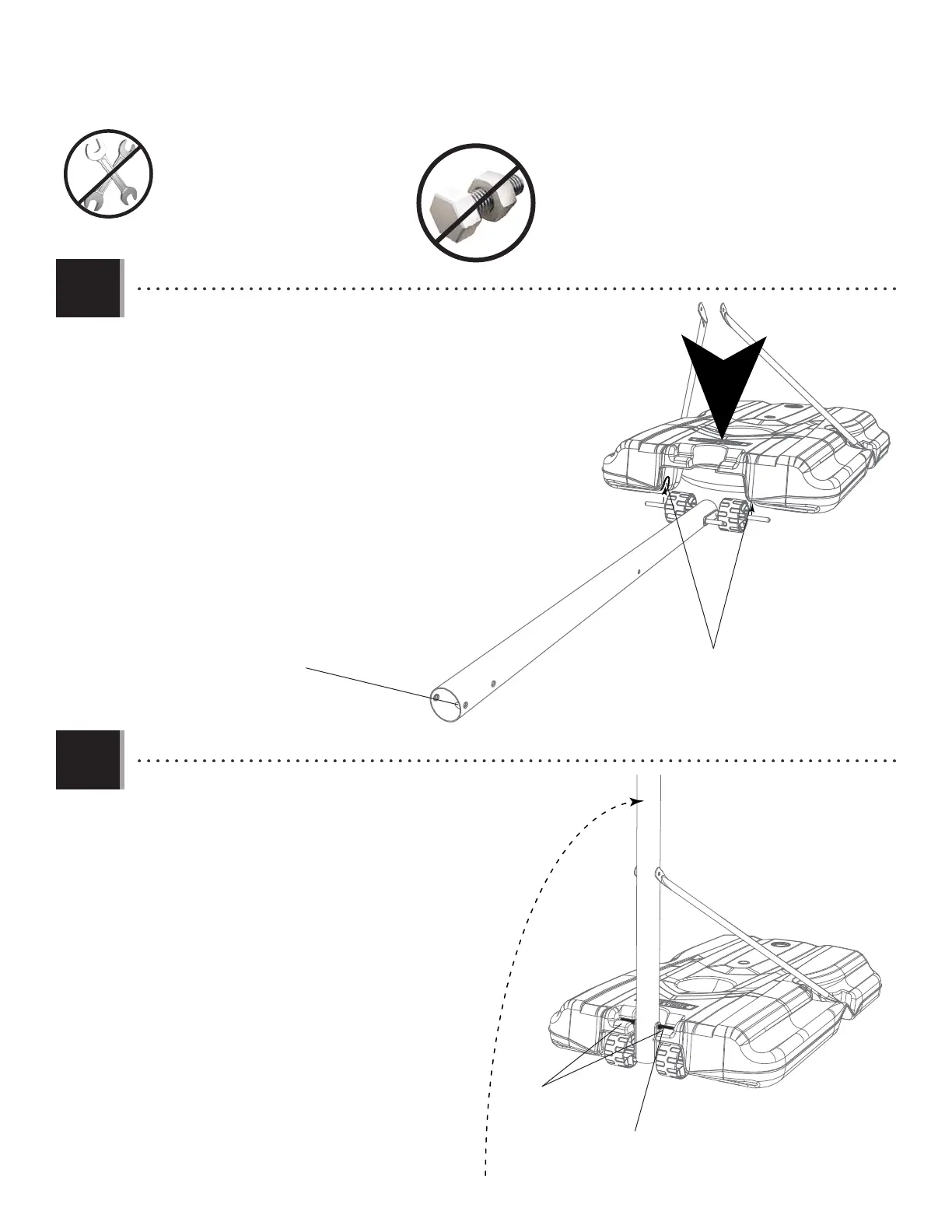 • With the pole assembly on the ground and the elongated hole at