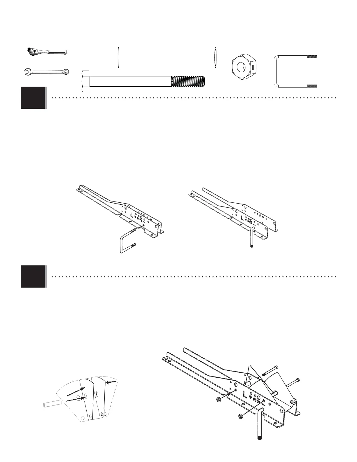 • Una los dos Soportes de tablero usando dos pernos hexagonales (AAS), dos espaciadores galvanizados (ABS), y dos tuercas