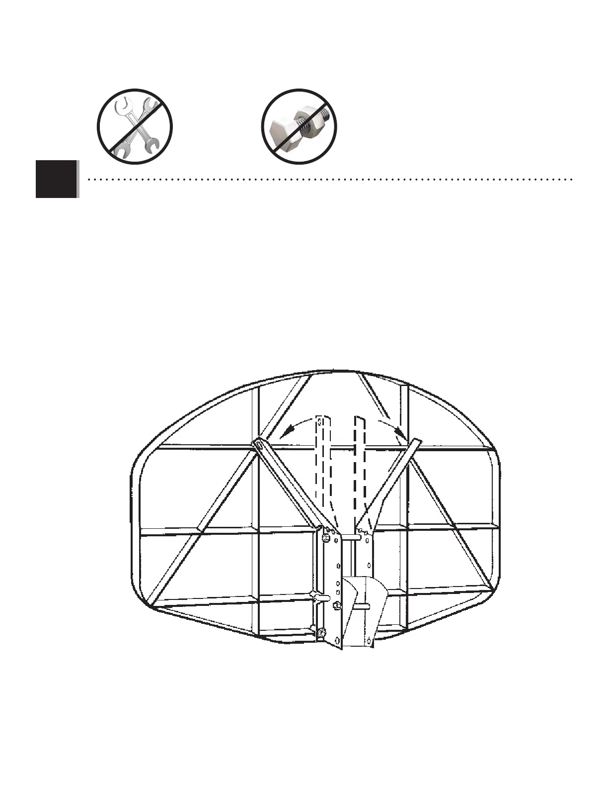 avec l’anneau et/ou le panneau de basket. Les écrous doivent être serrés uniquement à la main. Pliez les supports du