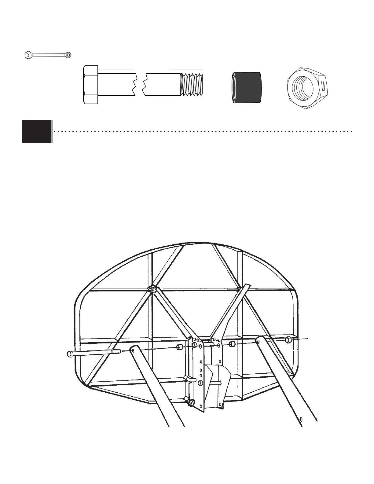 holes in the Brackets as shown. Slide a Hex Bolt (AAD) through one Extension Arm, a Spacer (ABL), the Backboard