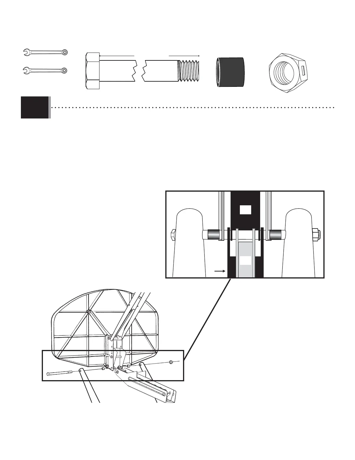 de basket droit, un autre espaceur et l’autre bras d’extension. Fixez le boulon avec un écrou de blocage double (AAX).