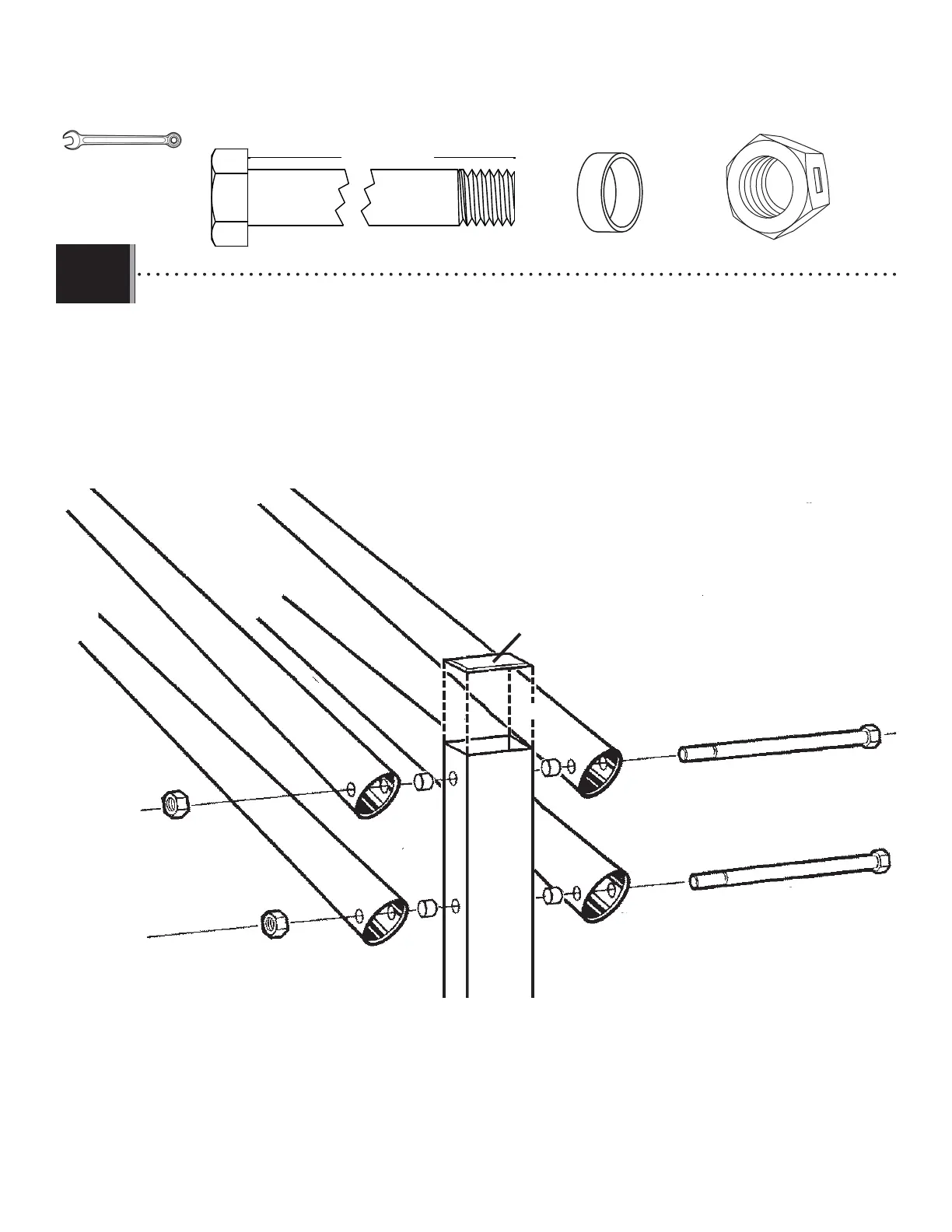 • Attach the Extension Arms (AKC) to the Mounting Tube (FKE) with the hardware indicated. Insert the Pole Cap (ALM) into