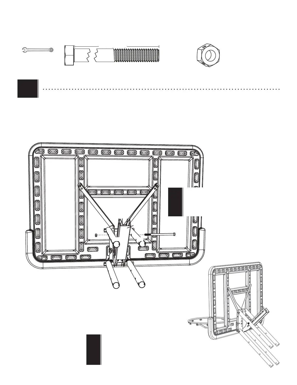 to the Backboard (AJI). Then secure the Dunk Latch and Outer Guard to the upper Extension Arms with the hardware shown.